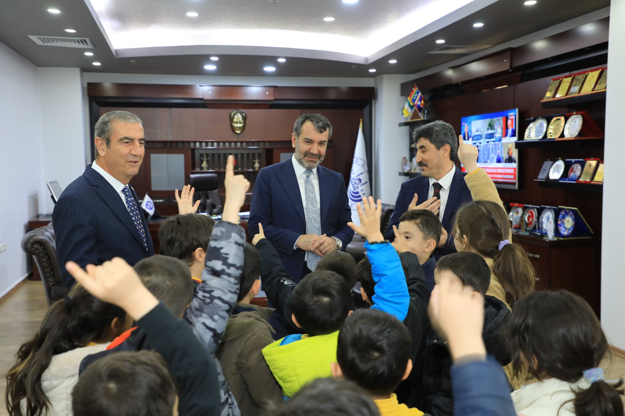 Çocuklarla yakından ilgilenen ve onların sorularını içtenlikle yanıtlayan Başkan Şerifoğulları, genç neslin bilinçlenmesi ve yönetime olan ilgisinin artırılmasının önemine vurgu yaptı. Ziyaretin sonunda öğrencilerle hatıra fotoğrafı çektiren Başkan Şerifoğulları, çocukları gözlerinden öperek eğitim hayatlarında başarılar diledi.