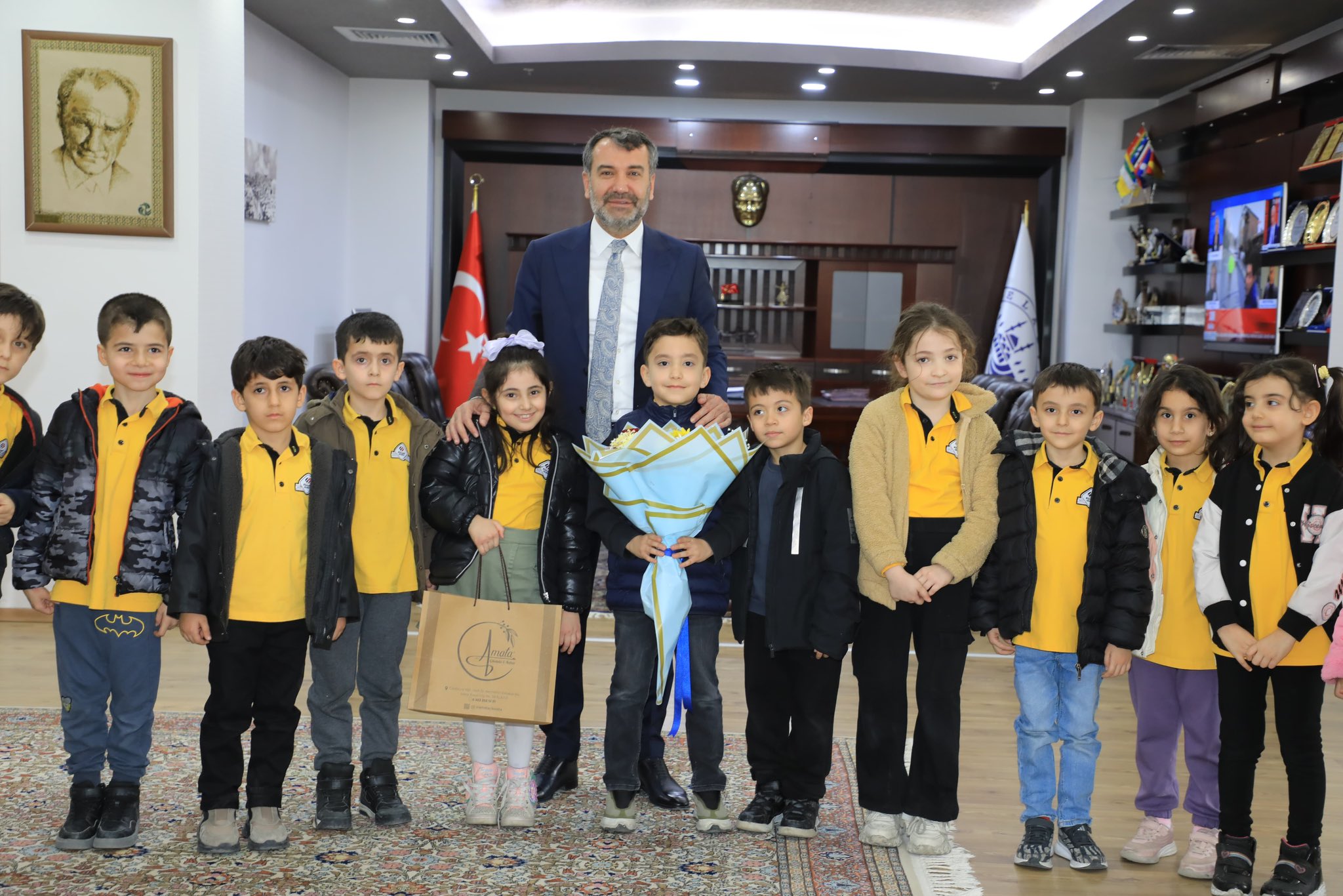 Elazığ Belediye Başkanı Şahin Şerifoğulları, Final Okulları’nda eğitim gören öğrencileri belediye binasında misafir etti. Ziyarete, Başkan Şerifoğulları’nın oğlu Ali Eymen ve değerli sınıf arkadaşları katıldı.
