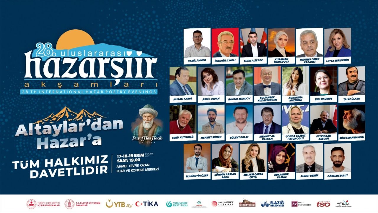 Uluslararası Hazar Şiir Akşamları, Kültür ve Turizm Bakanlığı, Yunus Emre Enstitüsü, Yurtdışı Türkler ve Akraba Topluluklar Başkanlığı (YTB), TİKA ve Elazığ Belediyesi iş birliğiyle düzenleniyor. Bu yılki organizasyon, Türk kültürünün önemli isimlerinden Yusuf Has Hacib’in mirasına ve fikir dünyasına dikkat çekmeyi amaçlıyor.