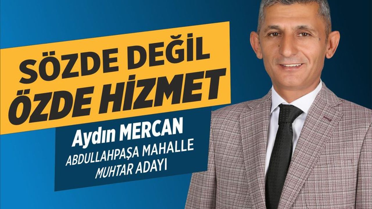 Abdullah paşa Mahallesi’nde 46 yıldır yaşayan 1977 doğumlu Aydın MERCAN, yaşadığı mahalleye hizmet etmek, mahallesini daha yaşanabilir konfora kavuşturmak, güzelleştirmek için Abdullah paşa Mahalle Muhtarlığına aday olduğunu vurguladı.
