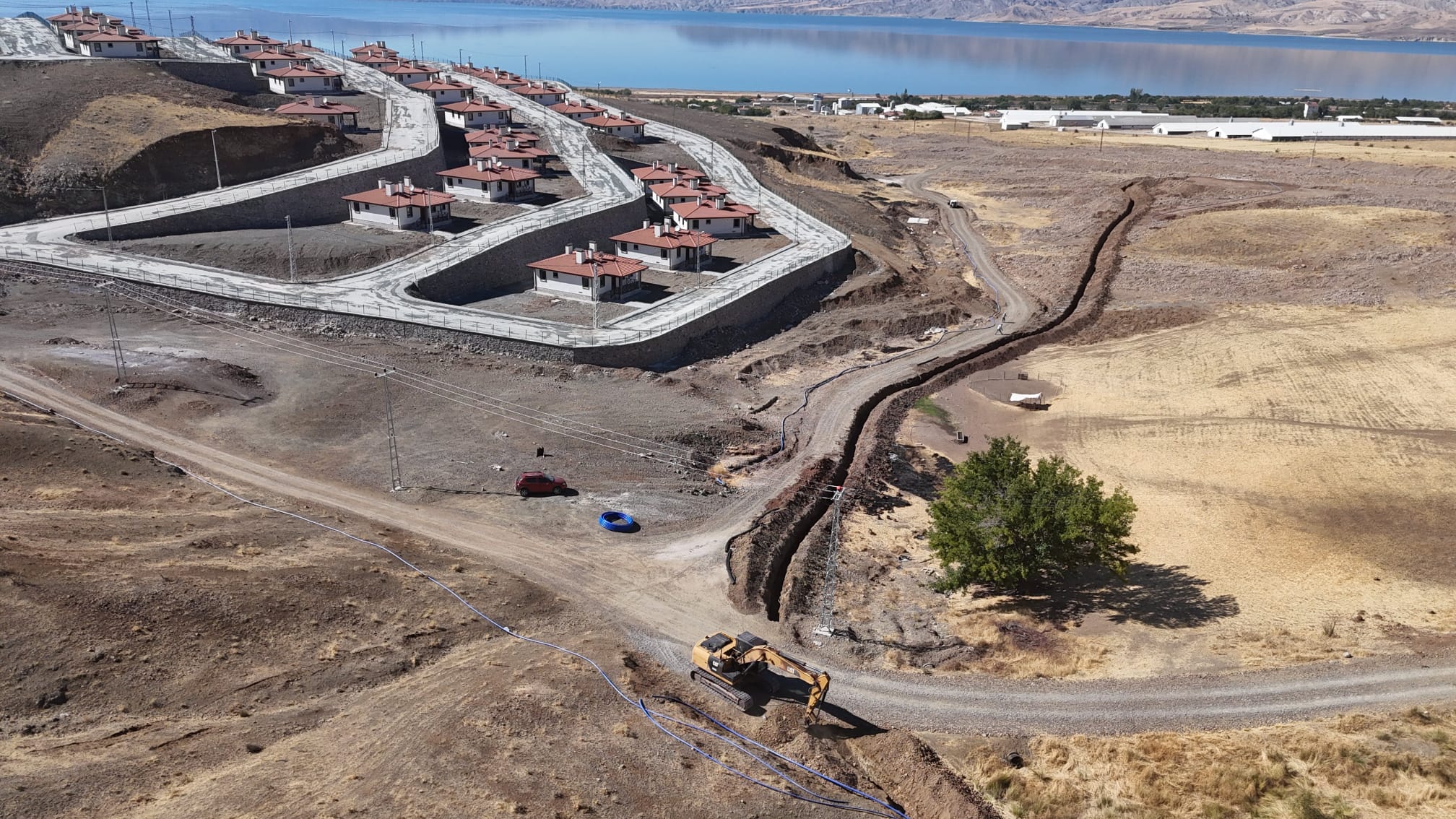 Toplamda 2 adet 75 tonluk ve 1 adet 100 tonluk betonarme gömme depoların yapılacağı çalışmada, terfi hatları ve şebekeler için 18.500 metre polietilen boru döşenerek afet konutlarına sağlıklı içme ve kullanma suyu sağlanacak.