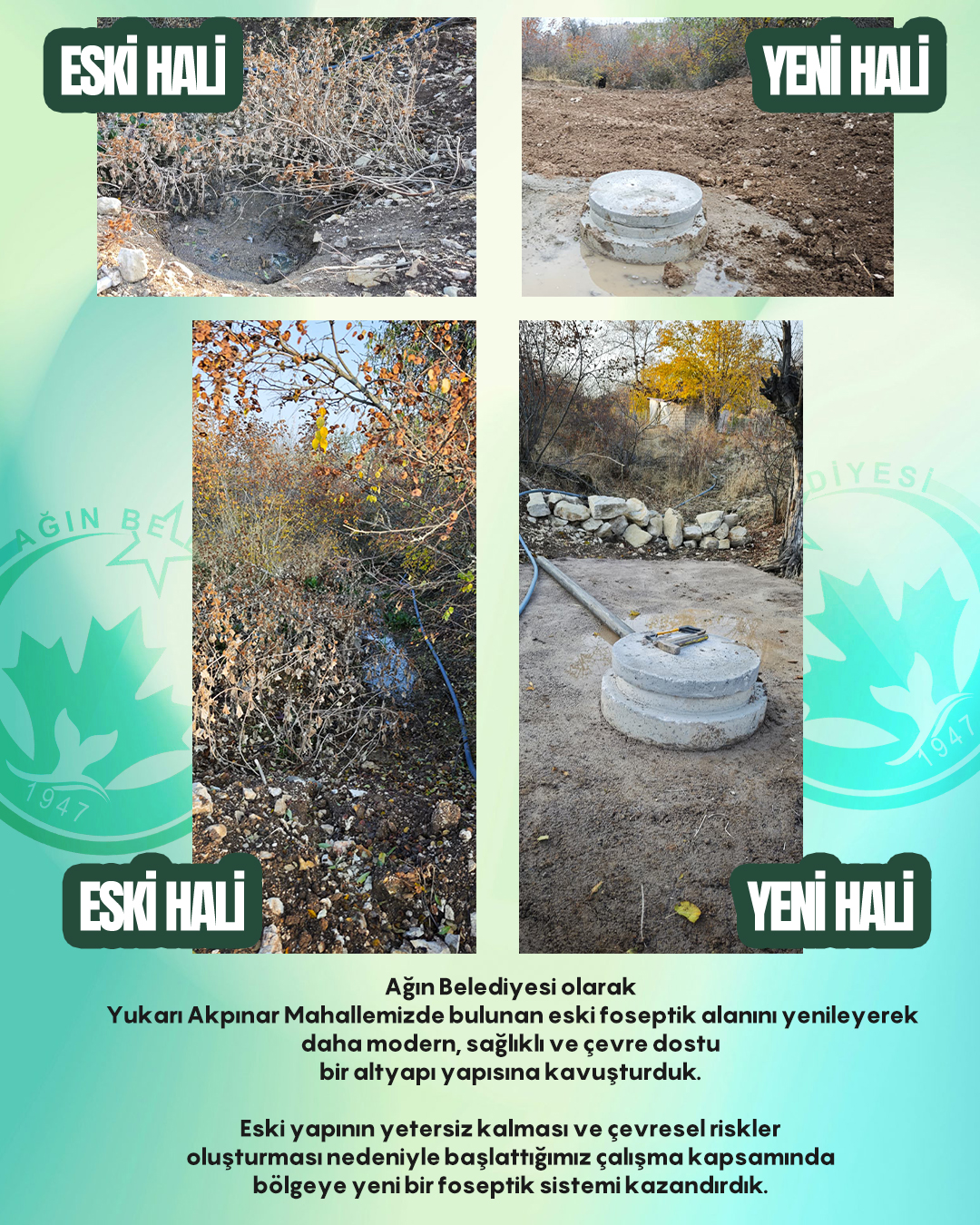 Belediye tarafından yürütülen çalışmalar kapsamında, mevcut yapının kullanım ömrünü doldurması ve çevrede istenmeyen koku ile kirlilik riskine yol açması nedeniyle alan tamamen yenilendi. Zeminin güçlendirilmesi, altyapı bağlantılarının düzenlenmesi ve standartlara uygun bir sistemin kurulmasıyla mahallede daha sağlıklı bir yaşam ortamı oluşturuldu.