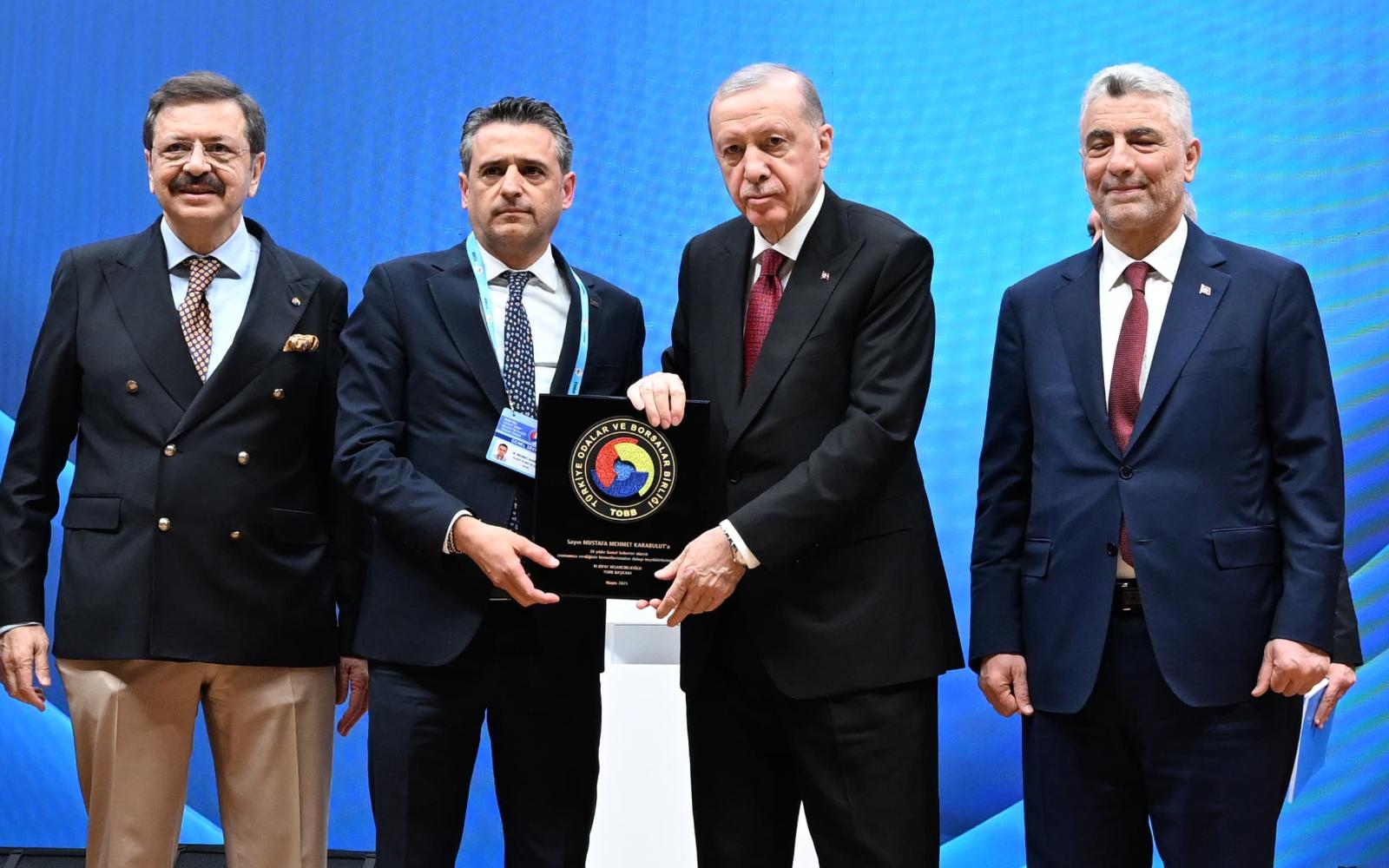 TOBB İkiz Kuleler’de TOBB Başkanı M. Rifat Hisarcıklıoğlu'nun ev sahipliğindeki TOBB 2025 Yılı Hizmet Şeref Belgesi ve Plaket Takdim Töreni, Cumhurbaşkanı Recep Tayyip Erdoğan, Ticaret Bakanı Ömer Bolat, Adalet Bakanı Yılmaz Tunç ile Sanayi ve Teknoloji Bakanı Mehmet Fatih Kacır'ın katılımıyla gerçekleştirildi.
