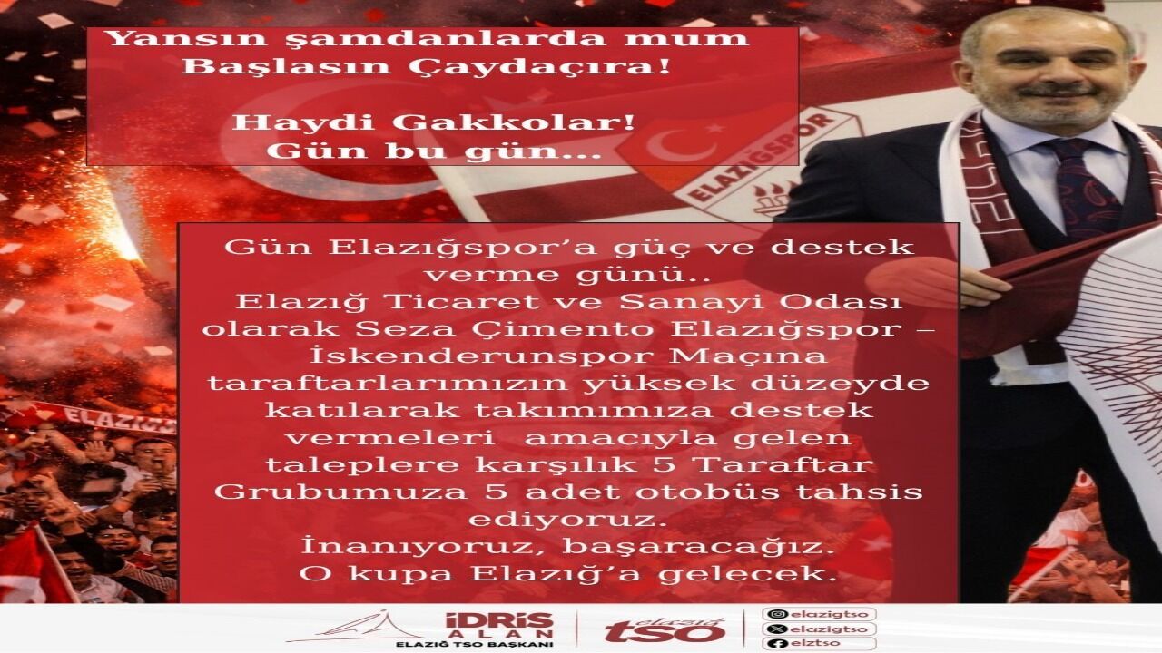 Elazığ Ticaret ve Sanayi Odası başkanı İdris Alan, Elazığspor'lu taraftarların İskenderunspor maçı için otobüs talebine kayıtsız kalmadı.
