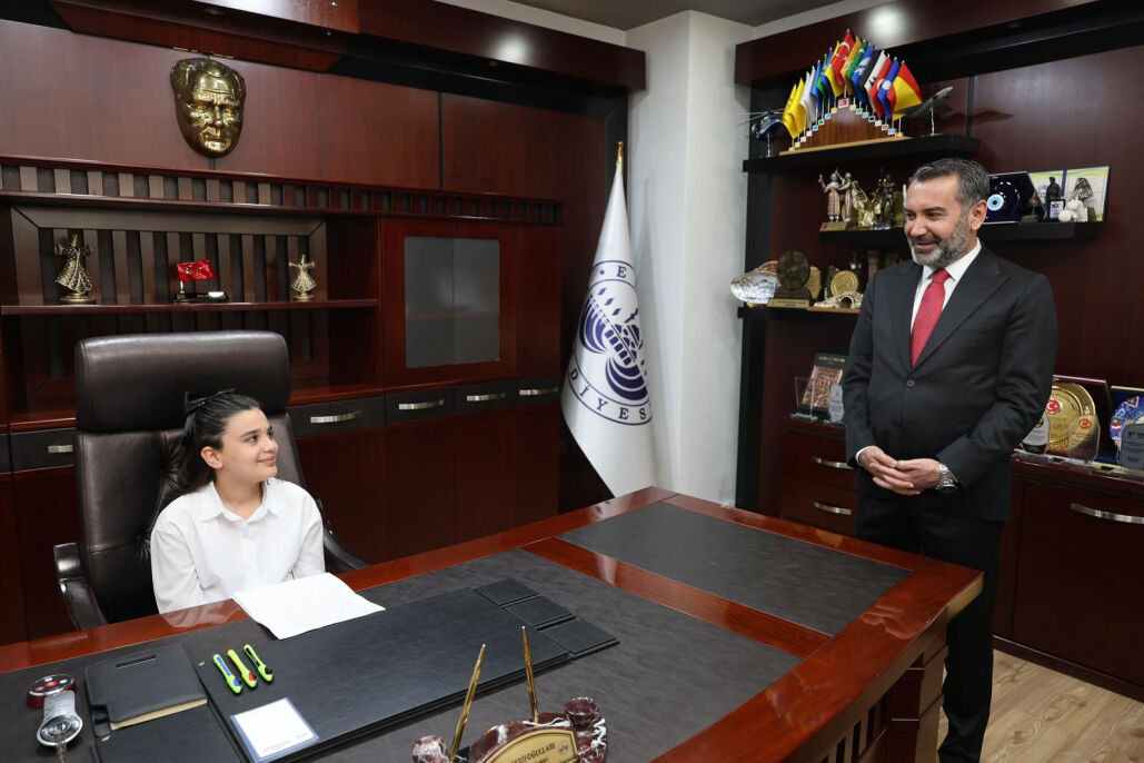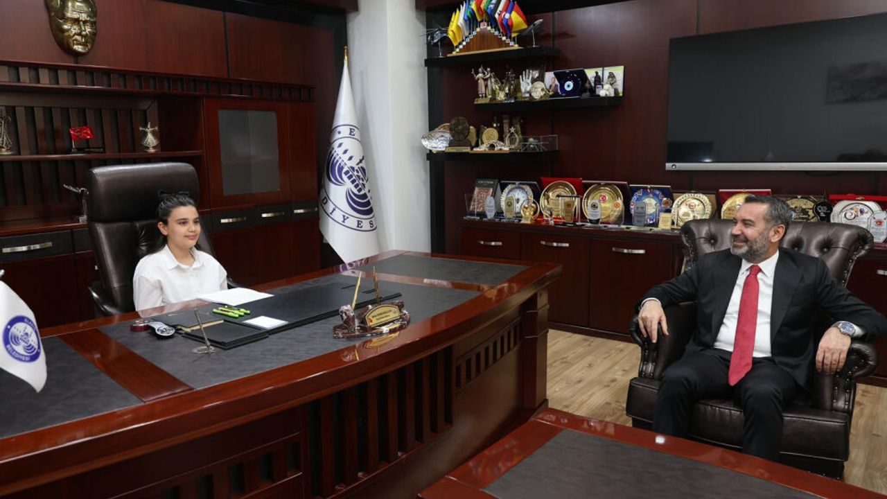 Elazığ Belediye Başkanı Şahin Şerifoğulları, 23 Nisan Ulusal Egemenlik ve Çocuk Bayramı etkinlikleri kapsamında koltuğunu, Vali M. Lütfullah Bilgin İlkokulu 4. Sınıf Öğrencisi Zehra Betül Duzcu'ya devretti.