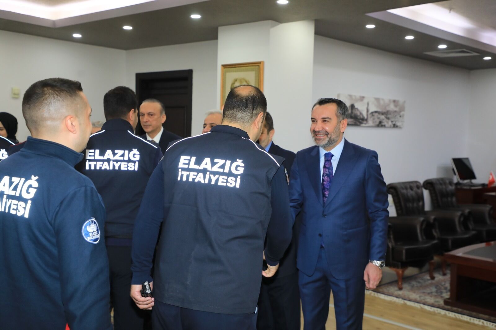 Elazığ Belediye Başkanı Şahin Şerifoğulları’na, bayramlaşma programında Belediye Başkan Yardımcıları ve birim müdürleri de eşlik etti. Başkan Şerifoğulları, Başkanlık Makamı’nda birimlerde görev yapan personeli tek tek kabul ederek bayramlarını kutladı.