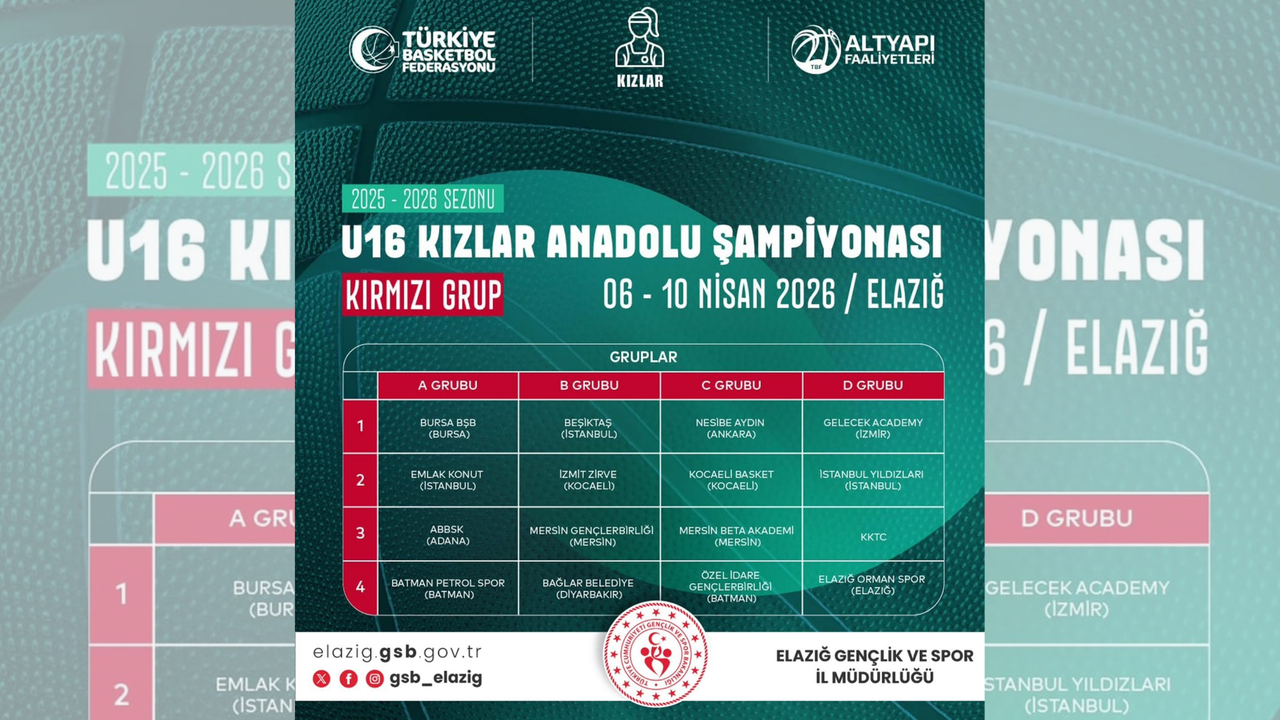 Basketbol U16 Kızlar Anadolu Şampiyonası, 6-10 Nisan 2026 tarihleri arasında Elazığ'da düzenlenecek.