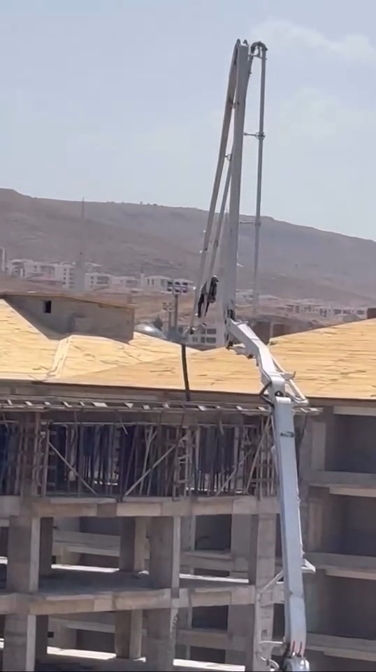 Olay, merkez Abdullahpaşa Mahallesi’nde bulunan inşaat halindeki bir binada meydana geldi. Edinilen bilgiye göre, devam eden bir inşaata harç götüren firma, mikser ve pompa ile binaya beton atmaya başladı. Bu sırada ismi öğrenilmeyen bir işçi ise pompa hortumunu adeta asansör gibi kullandı.
