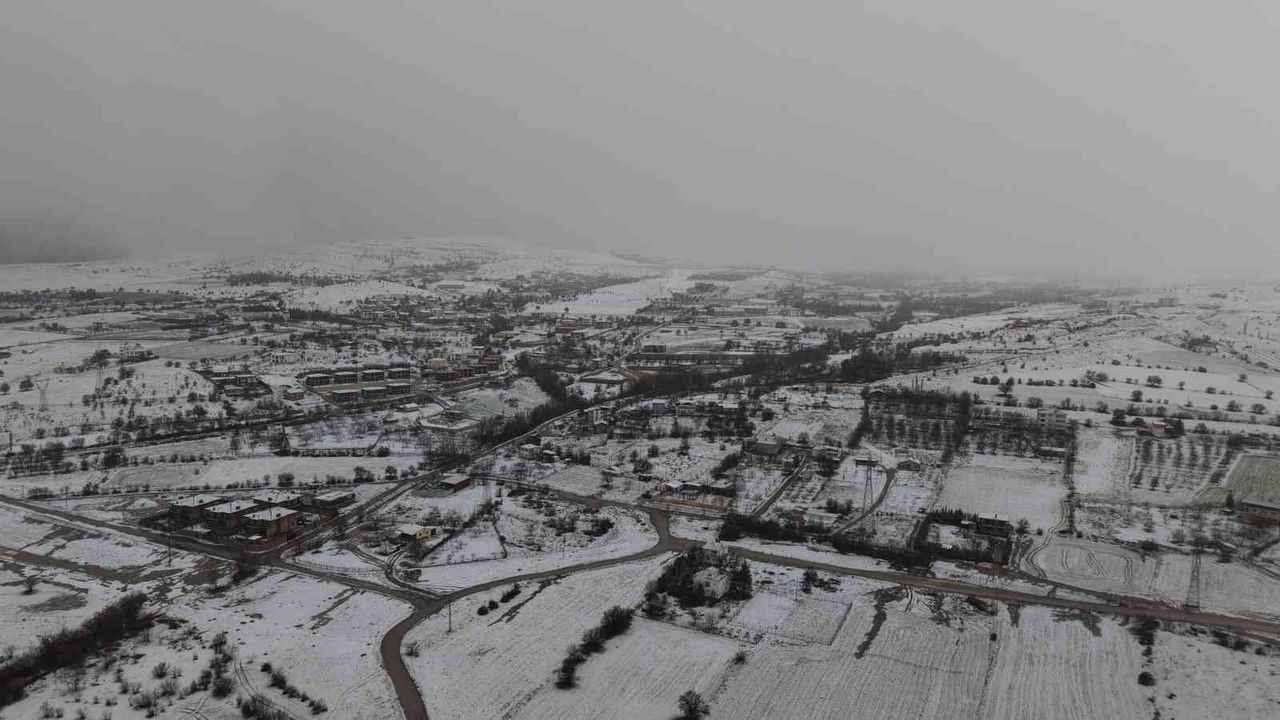 Elazığ, etkili olan yoğun kar yağışının ardından beyaza büründü. Lapa lapa yağan kar ve oluşan beyaz örtü dron ile havadan görüntülendi.