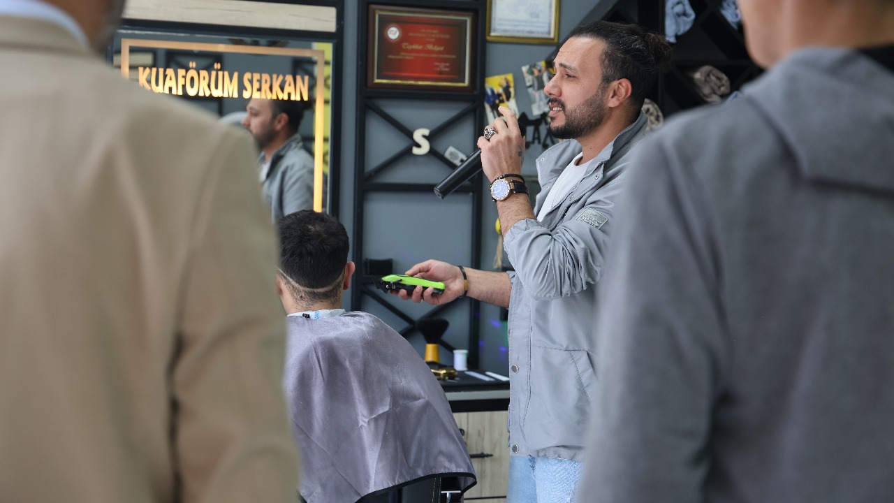 Mesleki yaklaşımını ve motivasyonunu aktaran Kuaför Serkan Yılmaz, '28 yıldır bu mesleğin içindeyim ve 40 yaşındayım. Ben mesleğimi sevmiyorum, mesleğime aşık bir insanım. İşimi büyük bir sevgiyle yapıyorum. Bunun yanı sıra şarkı da söylüyorum, insanların sıkılmamasını, daha mutlu olmasını istiyorum. Müşterilerimin mutluluğu benim için her zaman ön plandadır. İsterim ki müşterilerim buradan mutlu ayrılsın ve onları mutlu etmek için elimden gelen her şeyi yaparım. Çok şükür, müşterilerimin tıraşlarını doğal bir şekilde yapar, onları mutlu bir hâlde uğurlarım. Sizleri çok seviyorum. İyi ki varsınız, iyi ki Serkan'la berabersiniz. Tıraş olmak önemli değil, önemli olan birlikte bir kahve içmek. Bu arada kahvem de çok meşhurdur. Herkesi mutlaka bir kahveye beklerim' dedi.
