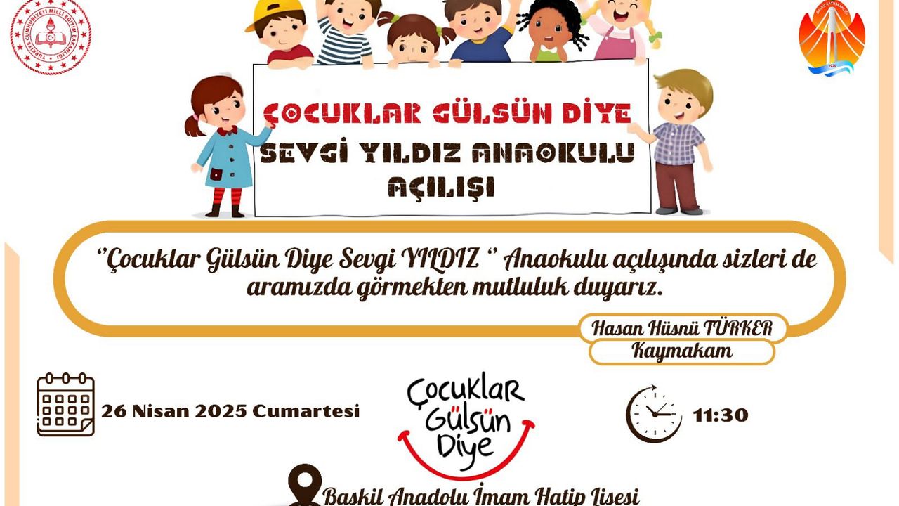 Anaokulunun yapımı, hayırsever Yıldız ailesi tarafından üstlenmiş olup, okulun adı “Çocuklar Gülsün Diye - Sevgi Yıldız Anaokulu” olarak belirlendi. Baskil İmam Hatip Ortaokulu’nun bahçesinde inşa edilen okul, yaklaşık 100 öğrenciye okul öncesi eğitim imkanı sunacak.