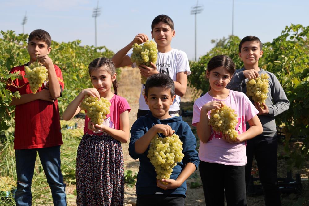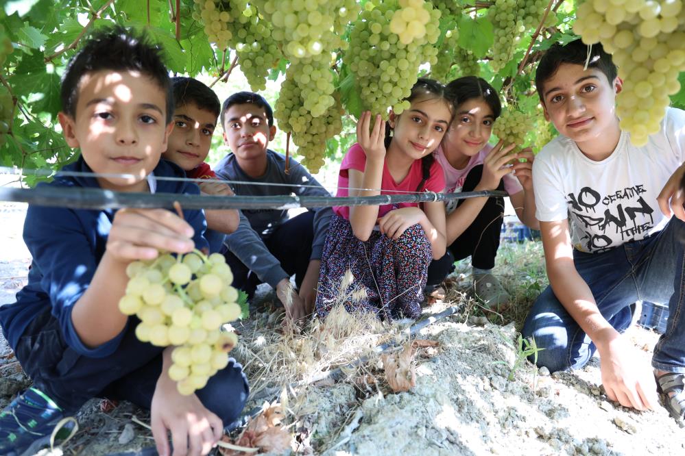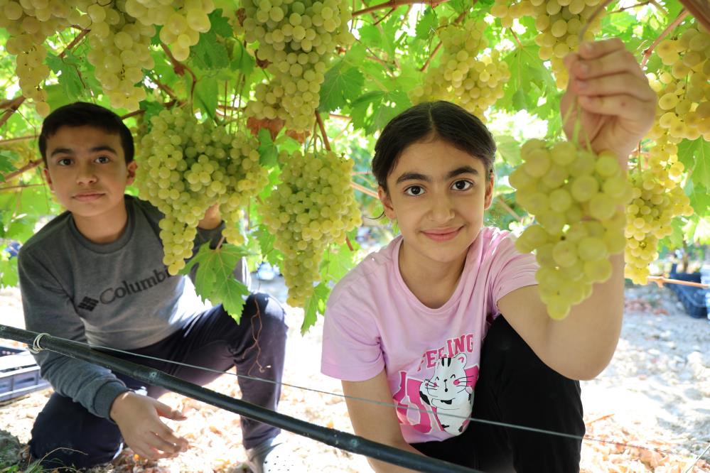 Çocuklardan Miray ise ’’Bağda kestiğimiz üzümleri topluyoruz. Yoruluyoruz, bazen uyuyoruz. Güzel ve keyifli vakitler geçiriyoruz” diye konuştu.