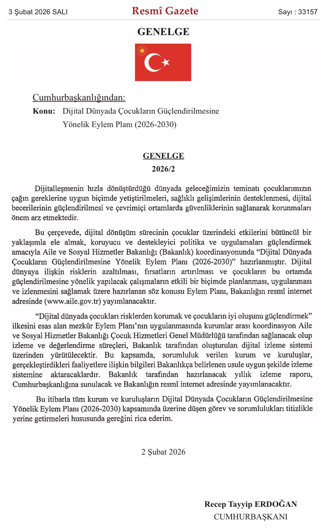 Cumhurbaşkanı Recep Tayyip Erdoğan’ın imzasıyla Resmî Gazete’de yayımlanan “Dijital Dünyada Çocukların Güçlendirilmesine Yönelik Eylem Planı (2026–2030)” doğrultusunda, dijital ortamlarda güvenliğin sağlanması ve dijital becerilerin geliştirilmesi devlet politikası haline getirildi. AK Parti Elazığ Milletvekili Prof. Dr. Erol Keleş, söz konusu planın hem koruyucu hem de güçlendirici unsurlar içerdiğini belirtti.