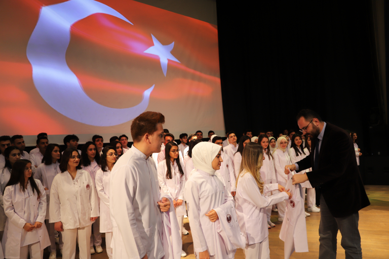 Üniversite Rektör Yardımcısı Prof. Dr. Bilal ÜSTÜNDAĞ ise “Bugün öğrencilerimiz beyaz önlüklerini giyerek Diş Hekimliği mesleğine adım atmış oldular. Bugün beyaz önlüklerini giyen öğrencilerimizi kutluyor, eğitim hayatlarında başarılar diliyorum” dedi.