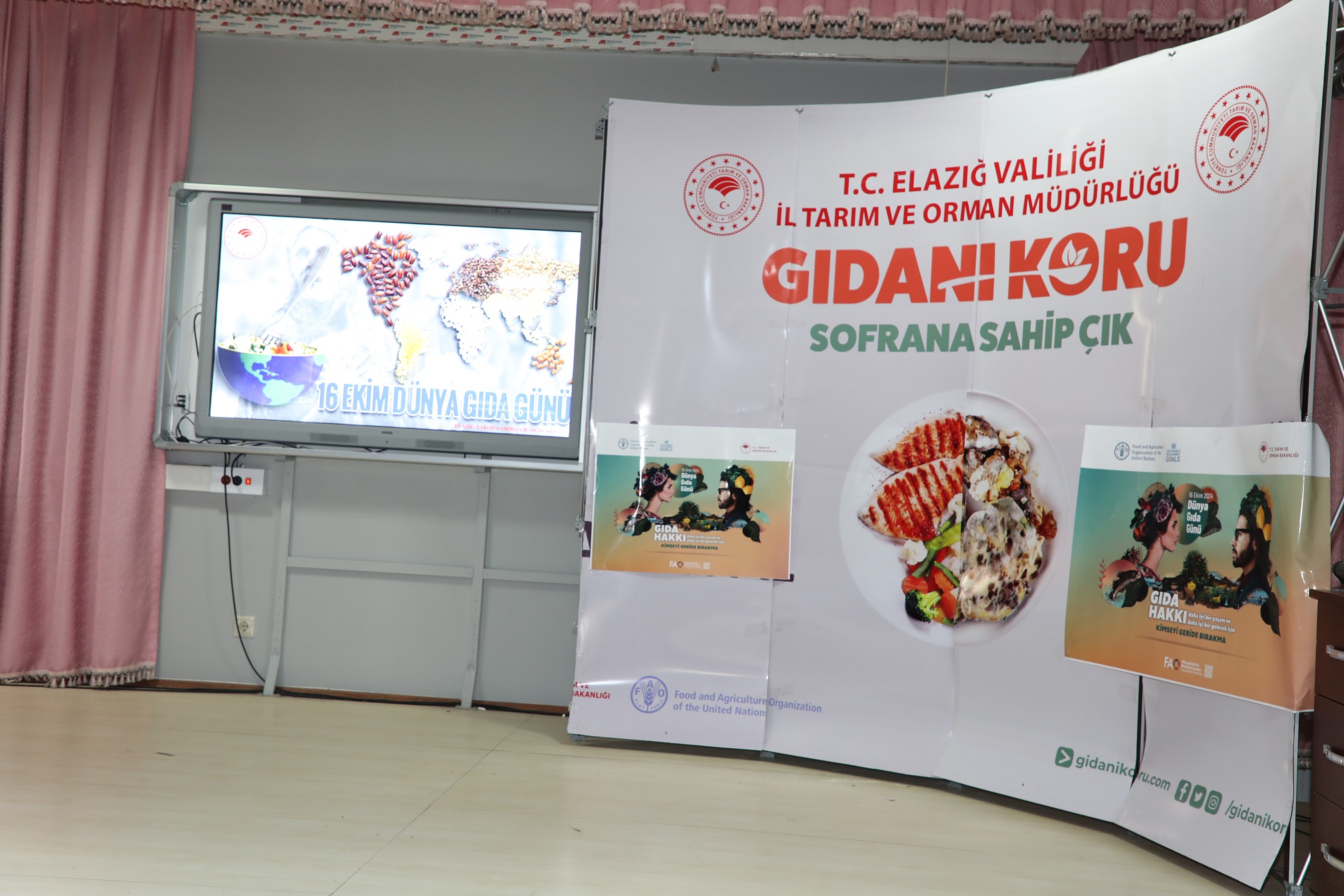 Elazığ İl Tarım ve Orman Müdürlüğü, 16 Ekim Dünya Gıda Günü kapsamında Mehmet Koloğlu Anadolu Lisesi'nde geniş katılımlı bir etkinlik düzenledi. Programa, Elazığ İl Tarım ve Orman Müdürü Saadettin Taşkesen, Elazığ İl Milli Eğitim Müdürü Mehmet Yiğit, okul müdürü Murat Yavuz Kaymaz, İl Müdür Yardımcısı İsmail Gürbüz, Gıda ve Yem Şubesi teknik personeli ile çok sayıda öğrenci katıldı. Bu etkinlikte, geleceğin teminatı olan genç nesillerin gıda güvenliği, dengeli beslenme ve sürdürülebilir tarım konularında bilinçlendirilmesi hedeflendi.