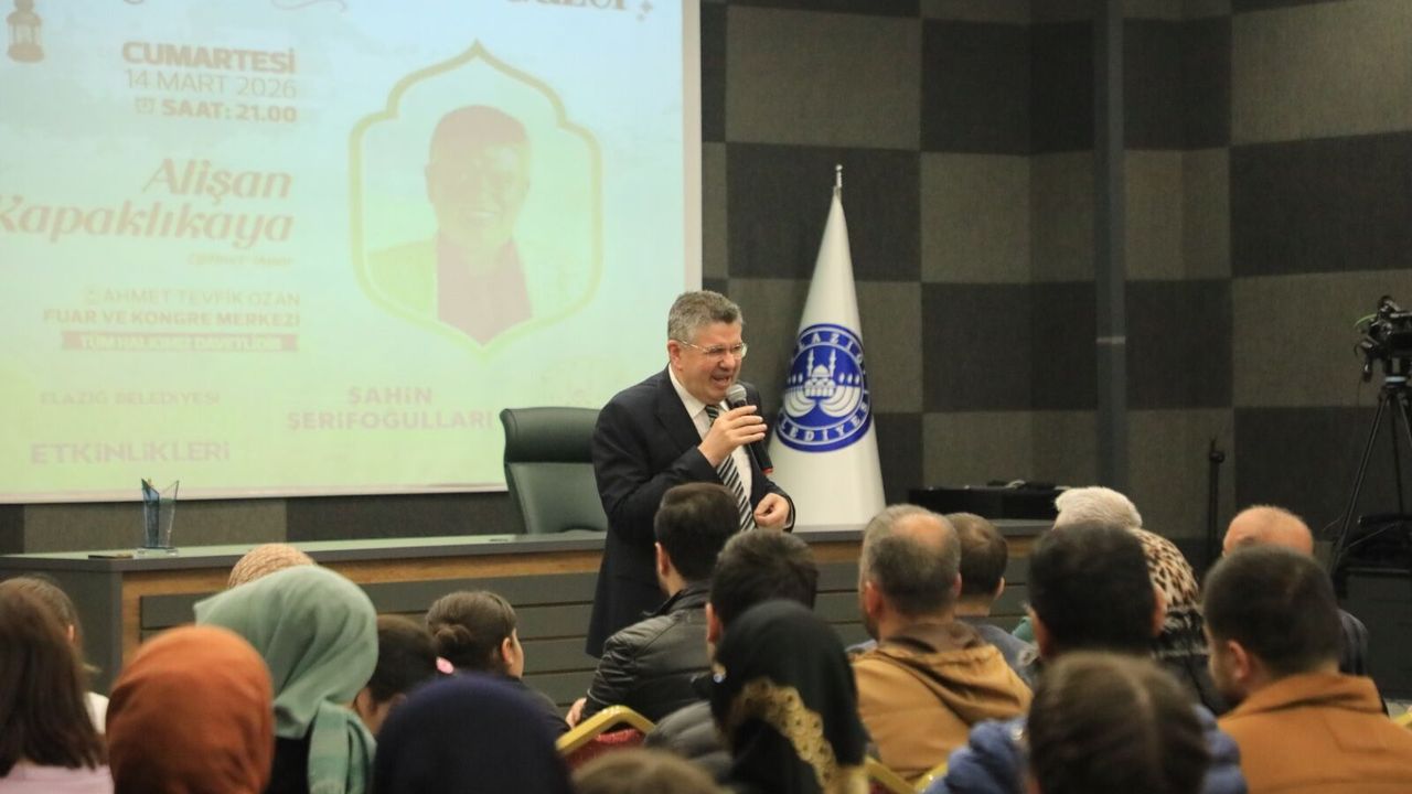 Elazığ Belediyesi, Ramazan ayının bereketini ve coşkusunu yaşatmak için birbirinden özel konukları Elazığlılarla buluşturmaya devam ediyor. Ahmet Tevfik Ozan Fuar ve Kongre Merkezi’nde gerçekleştirilen Ramazan ayı etkinliklerinin 24. gün konuğu, samimi ve esprili sohbetleriyle büyük kitlelerin beğeniyle takip ettiği Eğitimci-Yazar Alişan Kapaklıkaya oldu.