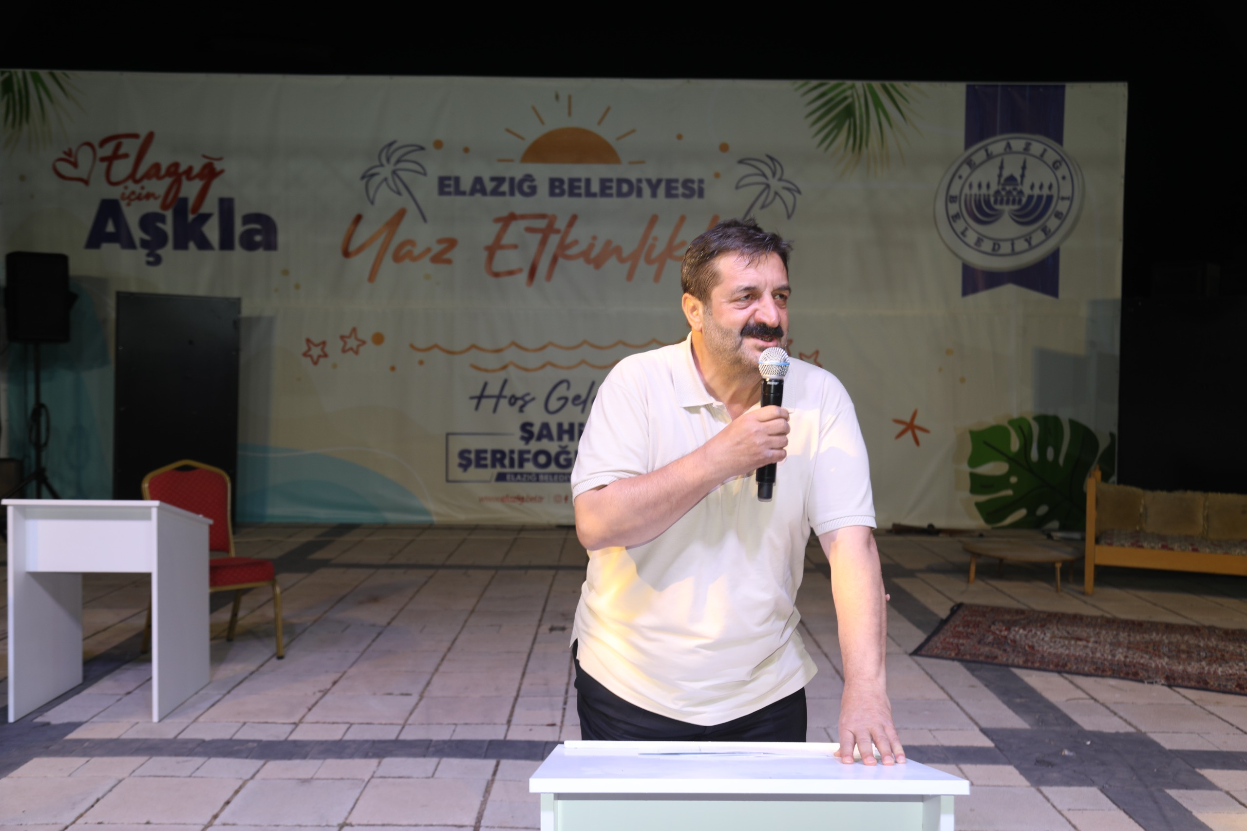 Program öncesi konuşan Elazığ Belediye Başkan Yardımcısı Nazif Bilginoğlu; “Elazığ Belediye Başkanımız Sayın Şahin Şerifoğulları, göreve geldiği günden itibaren her zaman Elazığlılara en güzel hizmetleri sunmaya gayret etti. Sayın Başkanımız, bir yandan vizyon projeleri birer birer yatırıma dönüştürürken, kültür ve sanat alanında insanımıza en güzel hizmetleri sunmanın önemini de her zaman vurgulamıştır. Elazığ Belediyesi olarak bu kapsamda Yaz Etkinlikleri programımızı başlattık. Amacımız; ailelerimize, çocuklarımıza, insanımıza yaz akşamlarını dolu dolu yaşatabilmektir. Bu etkinliklerimiz yaz mevsimi boyunca devam edecek.” dedi.