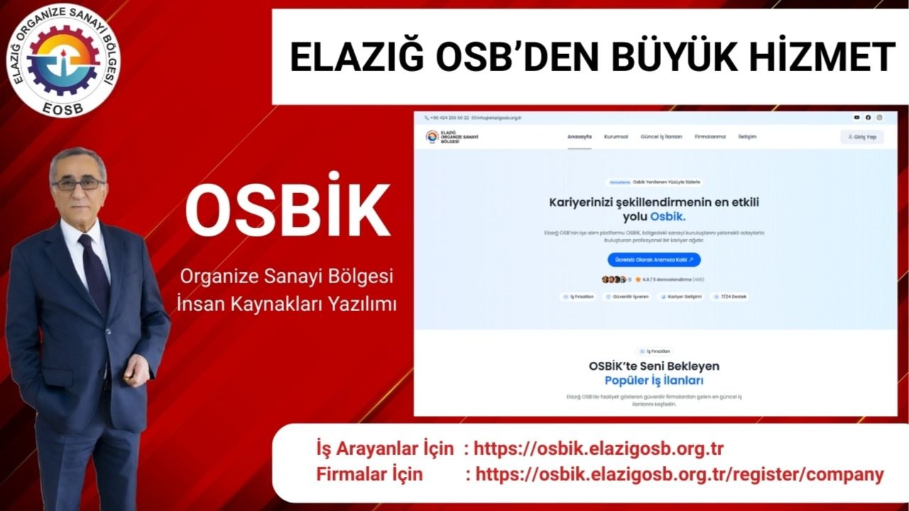 Elazığ Organize Sanayi Bölgesi'nin dijital dönüşüm kapsamındaki özel yazılımı olan OSBİK ile Türkiye’nin akıllı ve dijital Organize Sanayi Bölgeleri vizyonuna güçlü bir katkı sunmayı amaçlıyor.