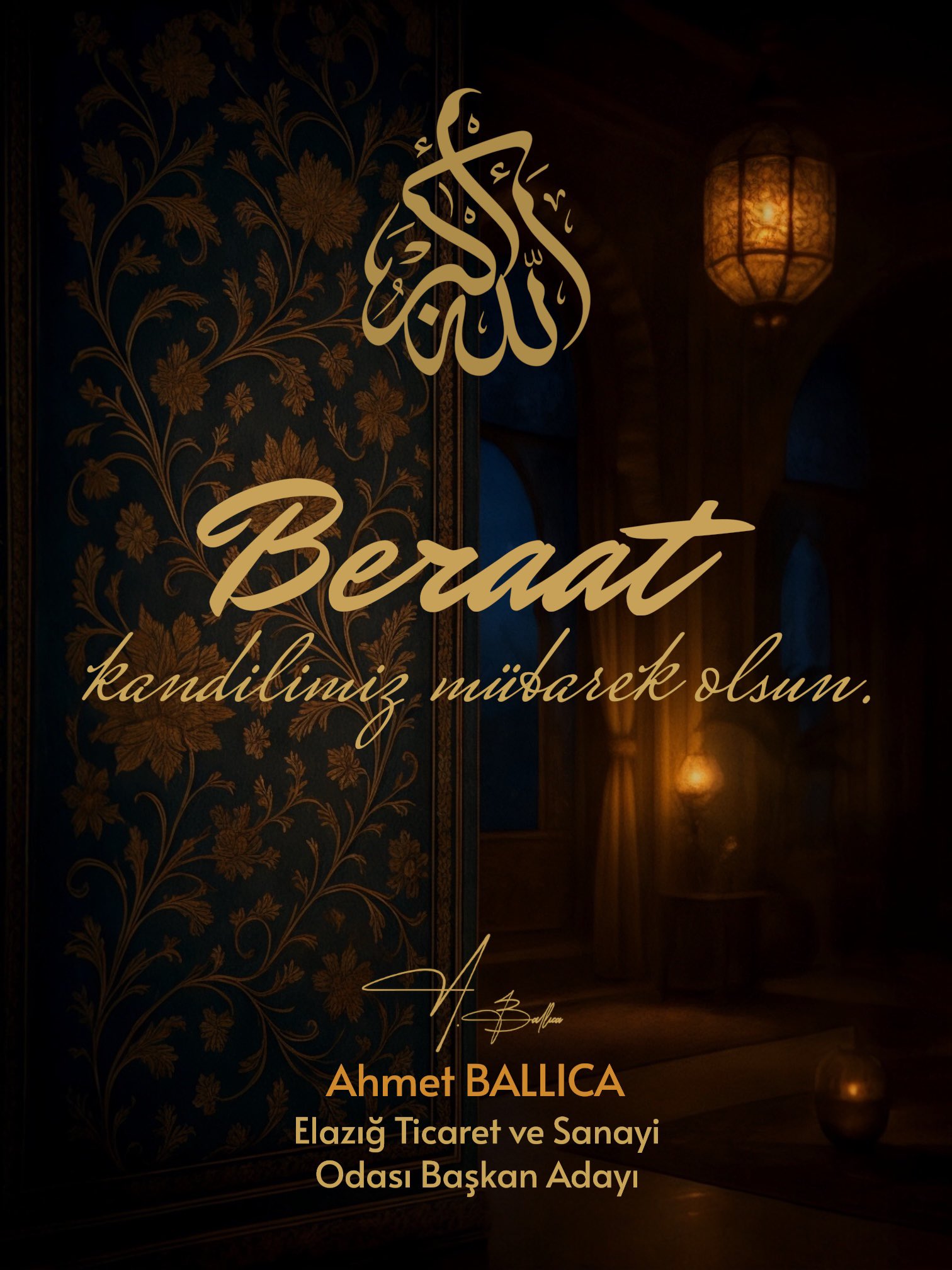 Elazığ Ticaret ve Sanayi Odası Başkan Adayı, Berat Kandili dolayısıyla yayımladığı mesajında, kandilin insanlığa umut, ülkeye güç, iş dünyasına adalet ve bereket getirmesini diledi. Başkan adayı mesajında, “Güzel Elazığ’ımıza huzur ve dayanışma getirmesi temennisiyle, duaların kabul, gönüllerin ferah olduğu bir kandil olsun” ifadelerine yer verdi.