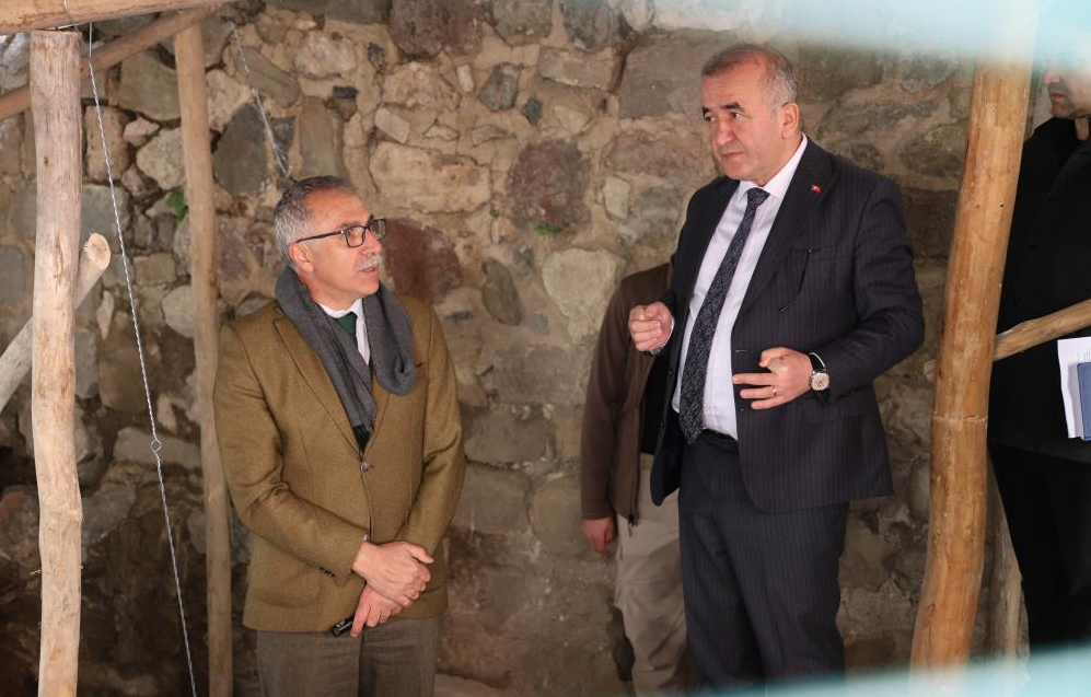 Elazığ Valisi Numan Hatipoğlu, Harput Kalesi’nde sürdürülen kazı ve restorasyon çalışmalarını yerinde inceledi. Vali Hatipoğlu, Fetih Mescidi’nin ihyası için başlatılan projenin Anıtlar Kurulu tarafından onaylandığını ve uygulama sürecine geçildiğini belirtti. Harput Kalesi’nin Elazığ’ın en önemli kültürel miraslarından biri olduğunu vurgulayan Hatipoğlu, burada yürütülen kazıları yakından takip ettiklerini ve Harput’un tarihi dokusunu yeniden canlandırmayı amaçladıklarını ifade etti. Harput’un tarihi kimliğini güçlendirmek amacıyla kale çevresinde bir mahalle dokusu oluşturmak, turizmi geliştirmek ve ziyaretçilere daha nitelikli bir alan sunmak için çalışmaların sürdüğünü ifade eden Vali Hatipoğlu, "Şu anda Harput Kalesi’nde kazılar sonucunda ortaya çıkarılan ve ’Fetih Mescidi’ olarak isimlendirdiğimiz Kale Mescidi’ndeyiz. Burayla ilgili olarak Elazığ’da göreve başladıktan sonra talimatını verdiğimiz bir çalışma vardı: Mescidin ihya edilmesi ve aslına uygun şekilde yeniden hayata geçirilmesi. Bu kapsamda hazırladığımız proje Anıtlar Kurulu tarafından onaylandı ve şu an itibarıyla uygulama sürecine geçmiş bulunmaktayız. Harput Kalesi, bizim tarihi ve kültürel mirasımızın en önemli yerlerinden biridir. Özellikle kalede gerçekleşen kazıları yakından takip ediyoruz. Belediyemizle birlikte alan yönetimi çalışmaları ve Harput mimarisine özgü koruma amaçlı imar planı çalışmaları da devam ediyor. Kalenin aslına uygun şekilde ziyaretçilere açılması büyük önem taşıyor" dedi.