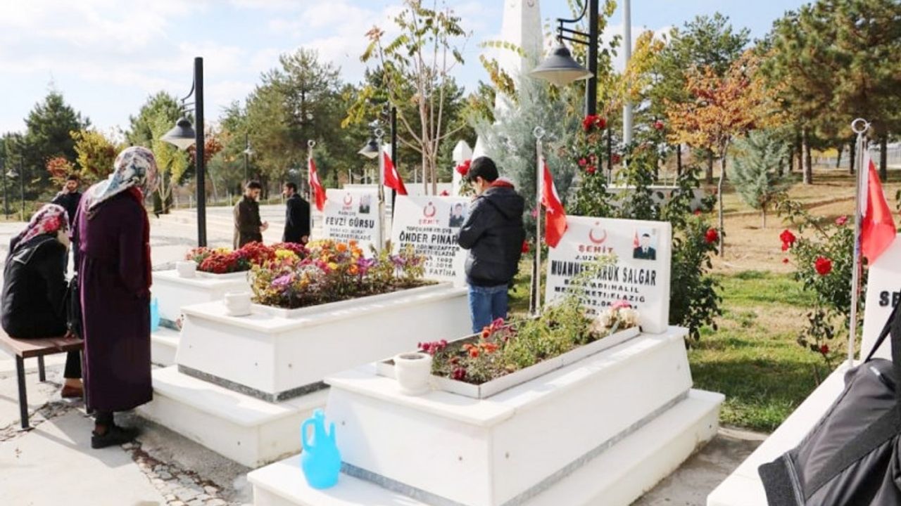 Elazığ Valisi Erkaya Yırık ve beraberinde olanlar, şehit kabirlerine karanfil bıraktı.