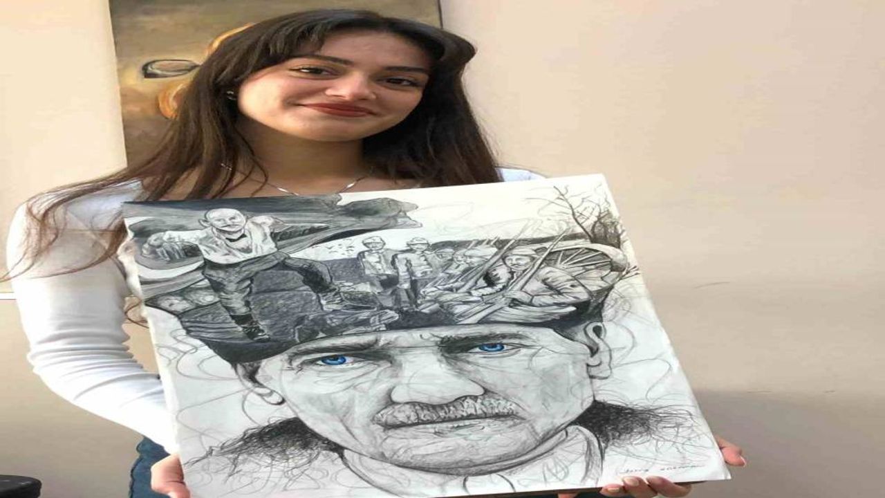 Elazığ’da 16 yaşındaki öğrenci Zehra Karaman’ın 18 Mart Şehitler Anma Günü ve Çanakkale Deniz Zaferi’nin 110. yıl dönümü dolayısıyla kara kalem sanatı ile yaptığı Atatürk portresi hayran bıraktı.