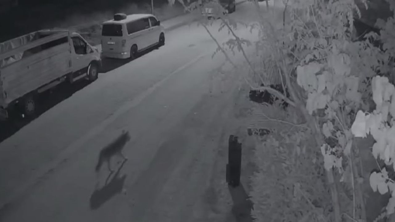 Elazığ’da aç kalan kurt, şehir merkezine indi. O anlar güvenlik kamerasına yansıdı.