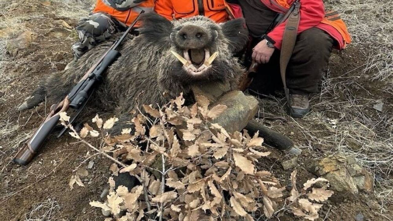 Av turizmi kapsamında yabancı avcılar, Elazığ’da yaban domuzu avı yaptı. Tarım ve Orman Bakanlığından alınan iznin ardından araziye çıkan avcıların avladığı ve çiftçilerin korkulu rüyası haline gelen yaklaşık 250 kiloluk yaban domuzunu görenler hayrete düştü.