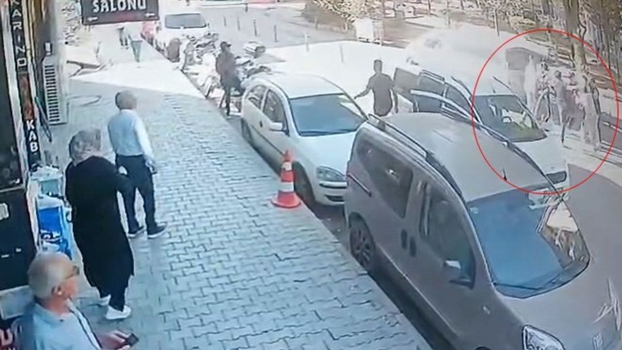 Elazığ’da kimliği tespit edilemeyen şahıslar, araçla husumetlilerinin yolunu kesip darp etmeye başladı. O anlar bir iş yerinin güvenlik kamerasına yansıdı.