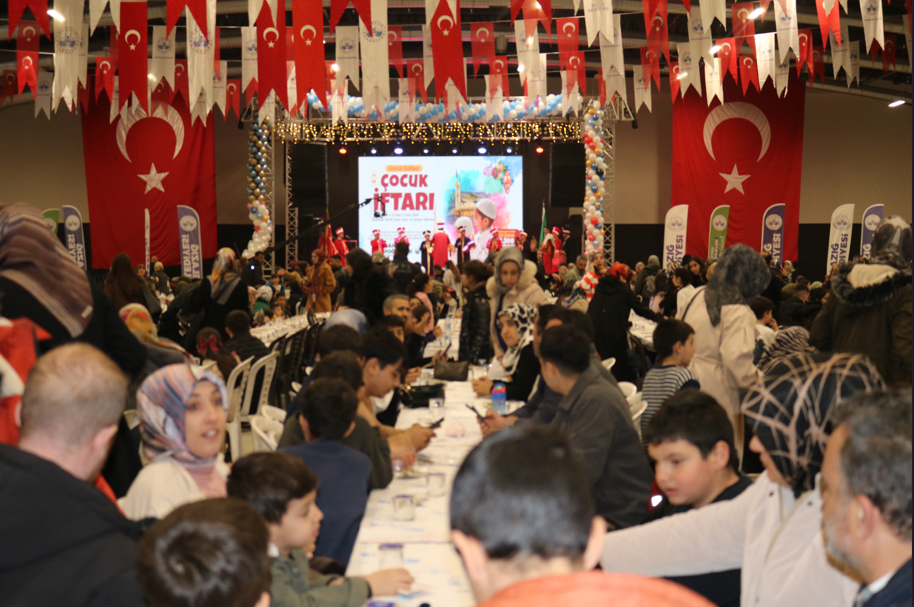 Elazığ Belediyesi’nin organizasyonuyla düzenlenen programda yüzlerce çocuk ve aileleri aynı sofrada buluştu. Ramazan ayının birlik, beraberlik ve paylaşma ruhunu yaşatmayı amaçlayan etkinlikte çocuklar için iftar öncesinde çeşitli aktiviteler hazırlandı. Fuar ve Kongre Merkezi’nde oluşturulan etkinlik alanında oyunlar, eğlenceli yarışmalar ve sahne gösterileri düzenlenirken çocuklar iftar saatine kadar keyifli vakit geçirdi. Program alanında oluşan renkli görüntüler, Ramazan ayının coşkusunu adeta yansıttı.