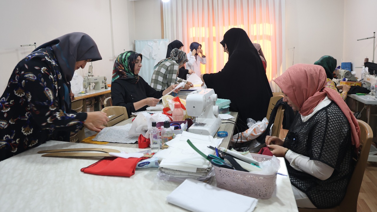 Giyim ve Üretim Teknolojisi usta öğreticisi Selma Karahüseyinoğlu, "Kursiyerlerimizle beraber, iki grup halinde çalışıyoruz. Burada öncelikle temel dikiş teknikleriyle başlıyoruz. Belli bir aşama kaydettikten sonra ihtiyaçları dahilinde ne yapmak istiyorlarsa onların üstünde yoğunlaştırıp çalıştırıyoruz. Burada emekli olanlar da ev hanımı olanlar da var. Bazen üniversite öğrencilerimiz dahi bizlere başvuru yapıyor. Buraya gelen kursiyerlerimiz her şeyden önce sosyal bir çevre ediniyor. Bunun haricinde kendilerine bir şey dikebilmenin mutluluğunu yaşıyorlar. Burada giysi olarak düşünebileceğimiz her şeyi hemen hemen yapabiliyoruz. Dış giyimden tutun da manto, etek, bluz, pantolon ve çocuk kıyafetlerine kadar her şeyi kendilerine dikebilmeyi öğretiyoruz" dedi.
