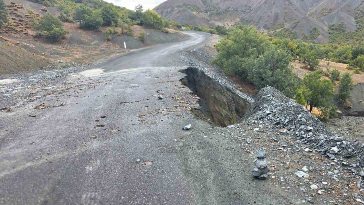 Elazığ’da yağışlarla birlikte Gökdere-Köklüce köy yolunda çökme ve kaya düşmesi meydana geldi.