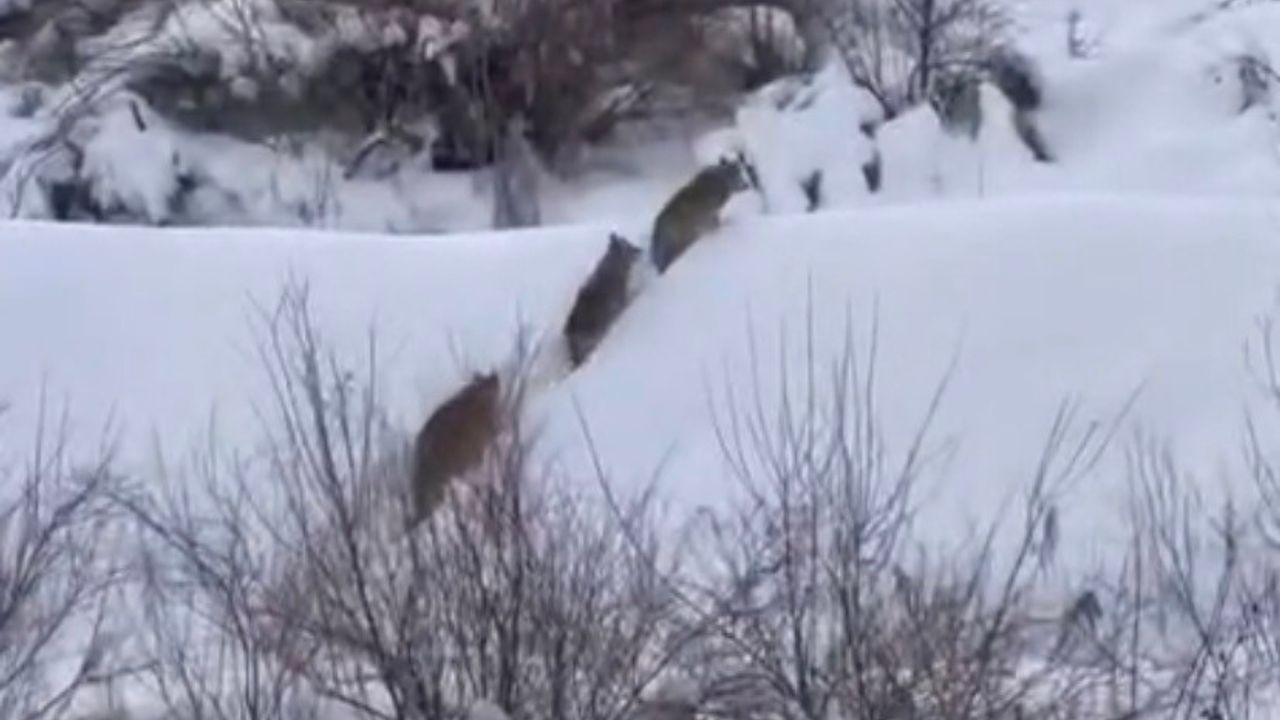 Elazığ'da yiyecek arayan kurt sürüsü görüntülendi.