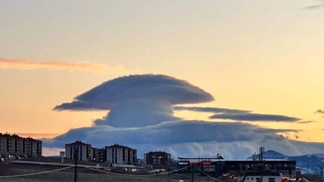 Elazığ’da oluşan mantar bulutu ilgiyle izlendi.<br/>Elazığ’ın Güneykent Mahallesi’nde dev mantar görünümlü bulut görüldü. Bölge sakinlerinin fotoğraflarını çektiği dev mantar görünümlü bulutlar, binaların üzerinde görsel şölen sundu.