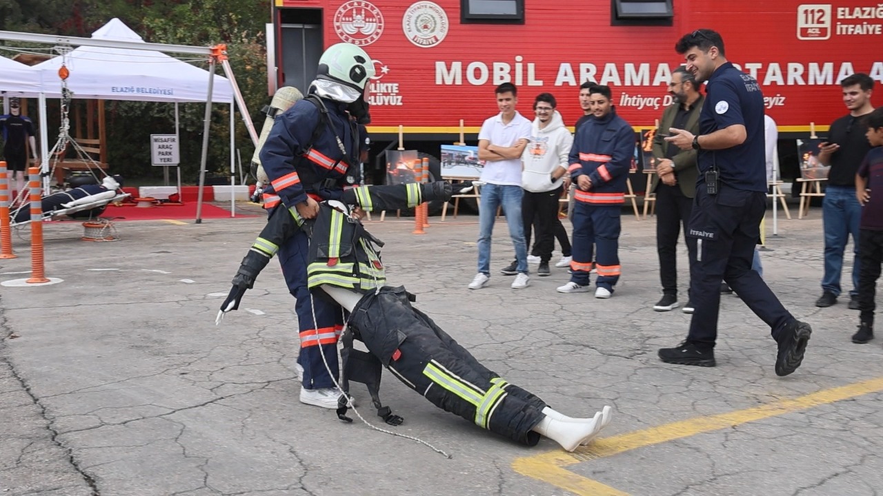 Elazığ’da ‘İtfaiye Haftası’ nedeniyle müdürlüğe gelen öğrenciler, zorlu itfaiye parkurunda eğitim gördü. Öğrencilere daha sonra itfaiye ekipleri tarafından kullanılan malzemeler tanıtıldı.