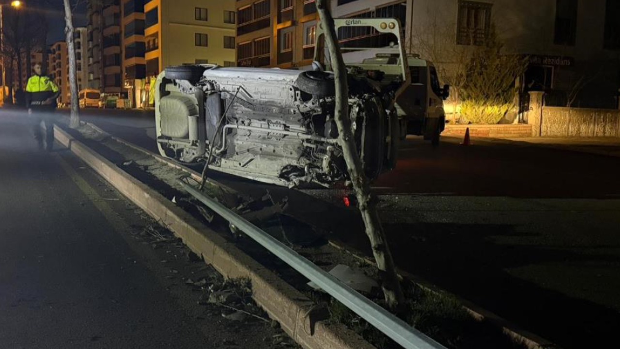 Elazığ'da sürücüsünün direksiyon hakimiyetini kaybettiği otomobil yan yattı, 1 kişi yaralandı.