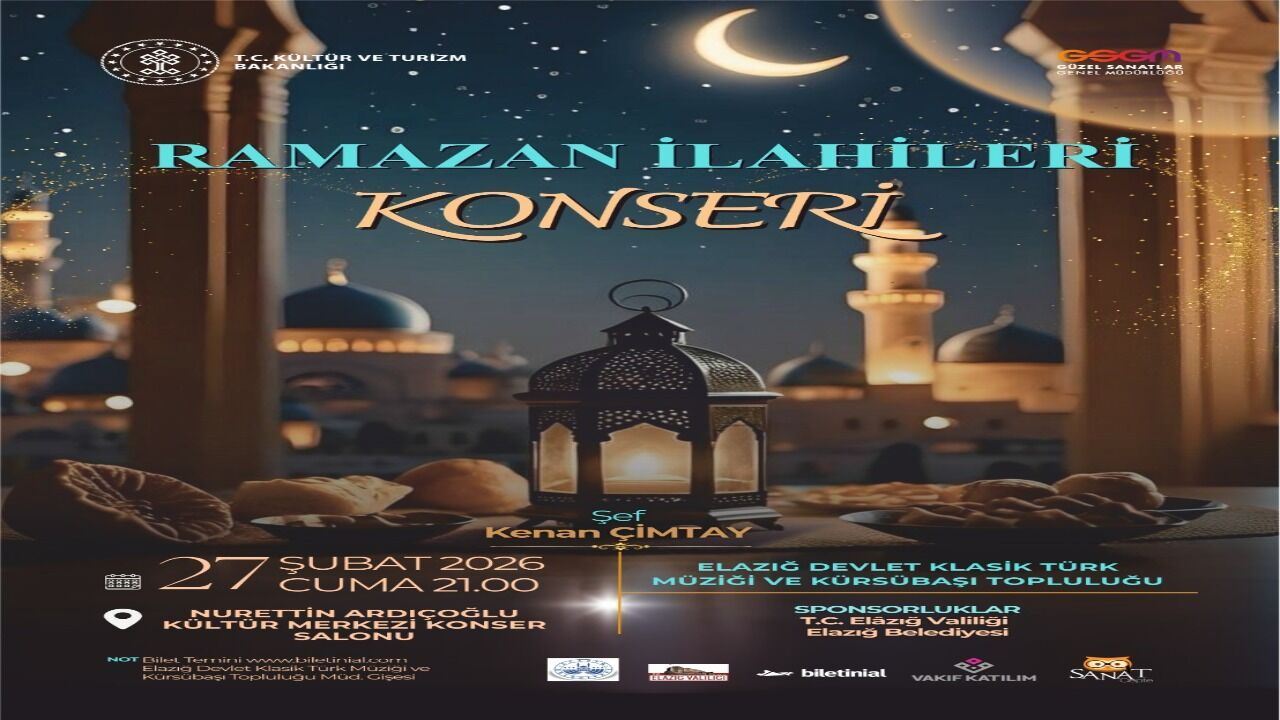 Kültür sanat etkinliklerinin sürdüğü Elazığ’da, Ramazan ayına yönelik özel içerikli konser programı düzenleniyor. Kültür ve Turizm Bakanlığı Güzel Sanatlar Genel Müdürlüğü bünyesinde faaliyet gösteren Elazığ Devlet Klasik Türk Müziği ve Kürsübaşı Topluluğu tarafından hazırlanan “Ramazan İlahileri” konseri, dinleyicilere manevi atmosferi yoğun bir müzik akşamı sunmayı amaçlıyor.