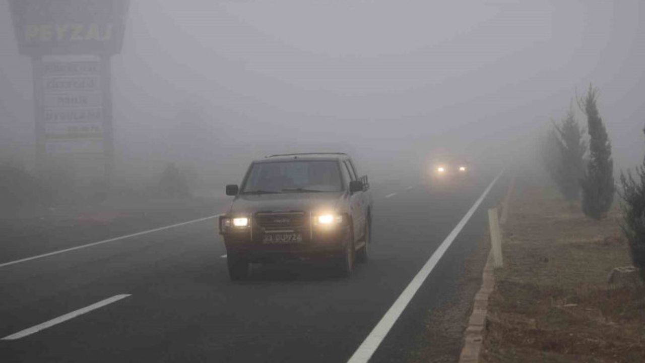 Elazığ’da yoğun sis etkili olurken görüş mesafesi 2 metreye kadar düştü. Araçlar sis arasında kaybolurken sürücüler düşük hızda ve araçlarının dörtlülerini yakarak seyretti.