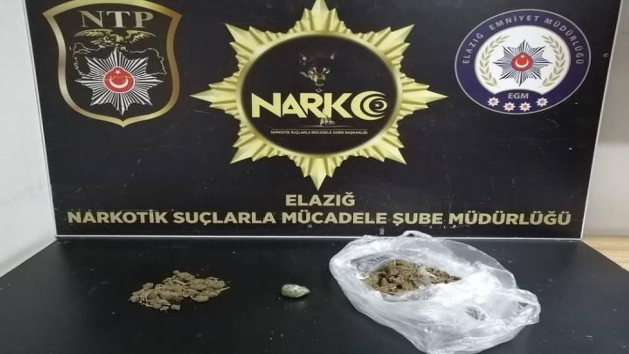 Elazığ Cumhuriyet Başsavcılığı koordinesinde, İl Emniyet Müdürlüğü Narkotik Suçlarla Mücadele Şube Müdürlüğü tarafından uyuşturucu ile mücadele kapsamında sokak satıcılarına yönelik çalışma gerçekleştirildi. Çalışmalar çerçevesinde 2 şahsa yapılan üst ve ikamet aramasında 6 parça halinde 1 kilo 311,17 gram esrar ve 1 adet hassas terazi ele geçirildi.