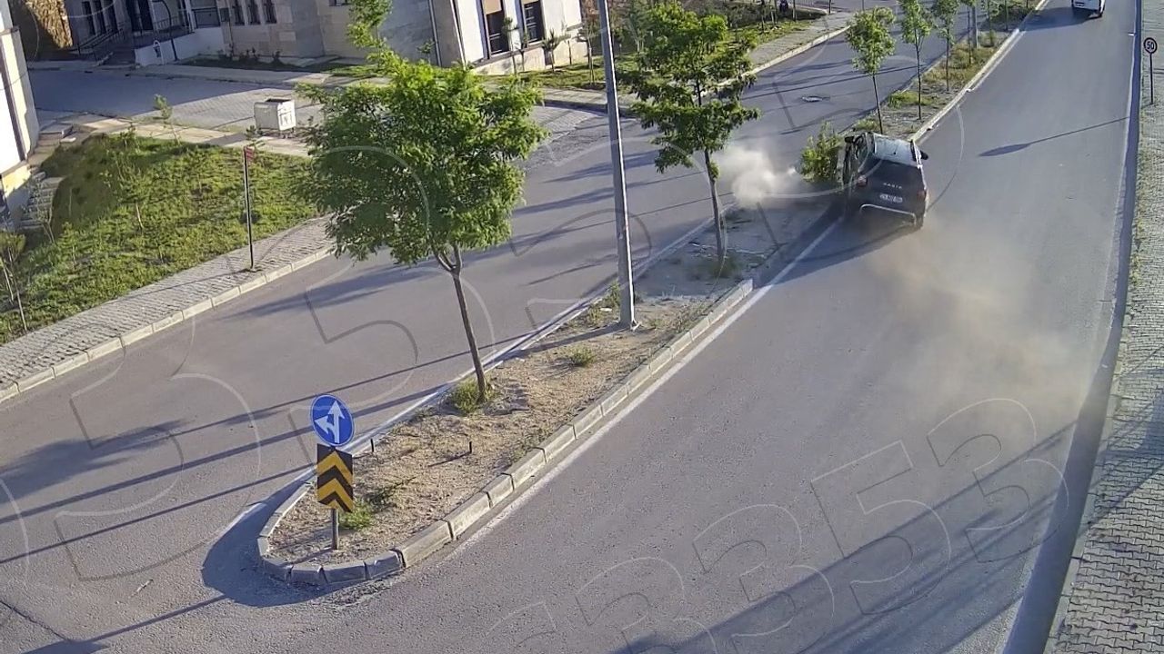 Elazığ’da kaldırıma çarptıktan sonra refüje çıkan otomobil, güvenlik kameralarına yansıdı.