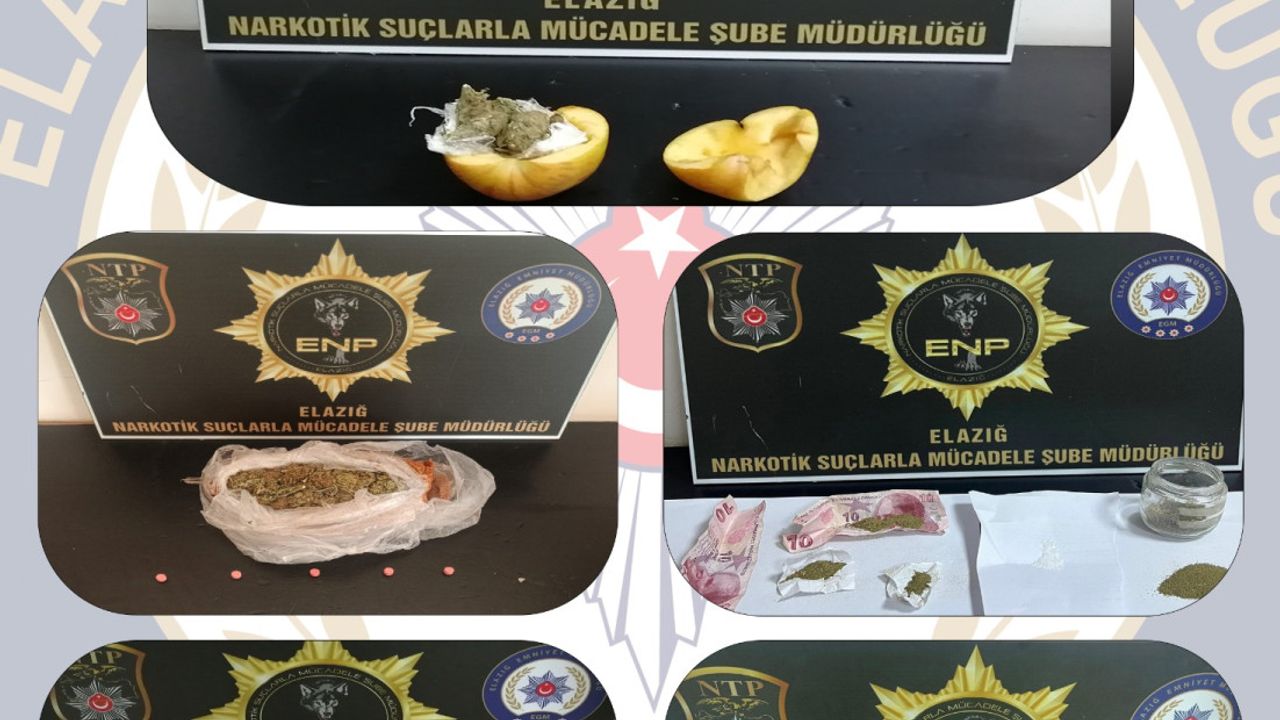 Elazığ Cumhuriyet Başsavcılığı koordinesinde İl Emniyet Müdürlüğü Narkotik Suçlarla Mücadele Şube Müdürlüğü, uyuşturucu ile mücadele kapsamında önemli bir operasyon gerçekleştirdi. Yapılan çalışmalarda, uyuşturucu madde kullanan şahıslara ve sokak satıcılarına yönelik hedeflenen operasyon sonucunda aşağıdaki maddeler ele geçirildi:
