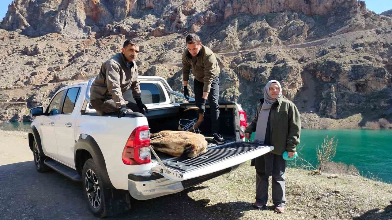 Bölgede yapmış oldukları dağ yürüyüşü sırasında bir dağ keçisi bulduklarını aktaran Miraç Doğan, durumu ekiplere bildiklerini ve bölgeye geldiklerini söyledi.