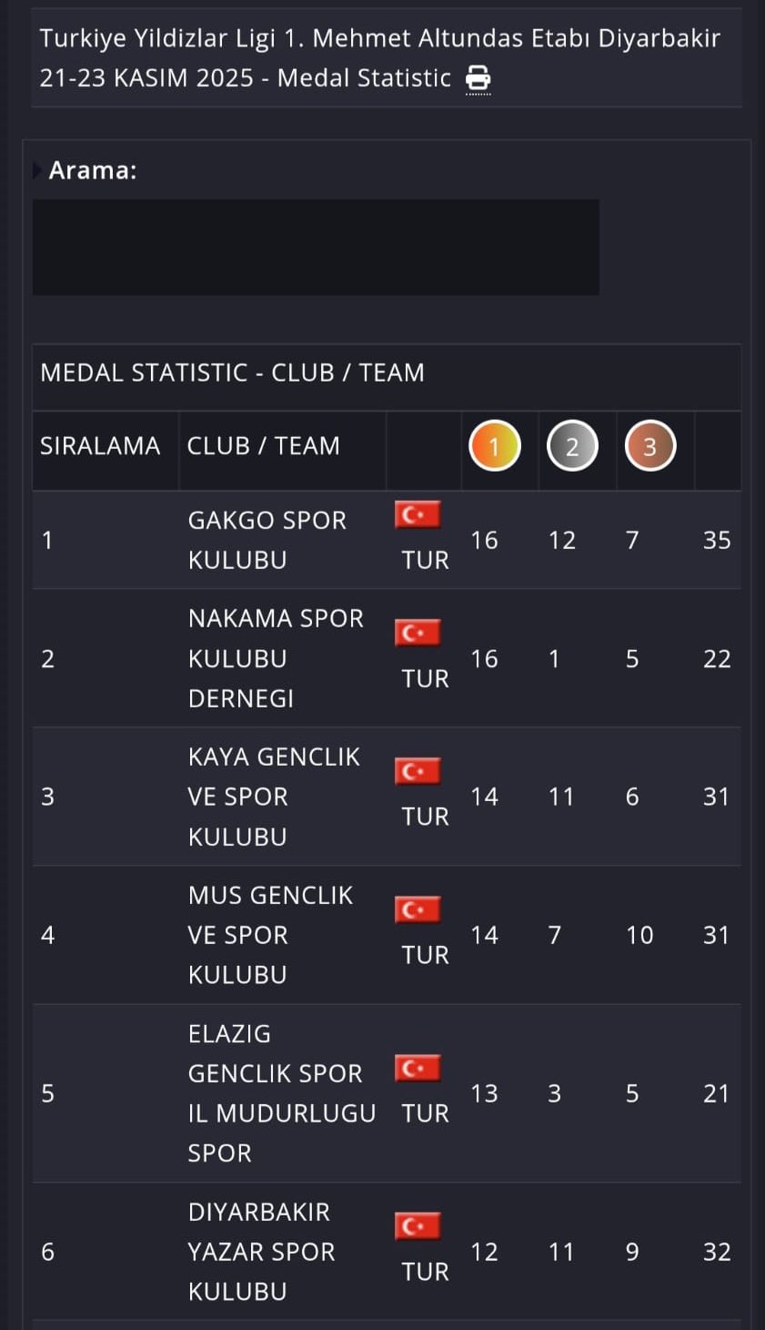 Gakgo Spor Kulübü, büyük bir başarıya imza atarak genel klasmanda 1. Etap Bölge Birinciliğini kazandı ve Elazığ’a gurur yaşattı. Öte yandan Elazığ Gençlik ve Spor Kulübü, 19 sporcu ile katıldığı turnuvada 12 altın, 3 gümüş ve 4 bronz madalya elde ederek genel klasmanda 1. Etap Bölge Beşincisi olmayı başardı.