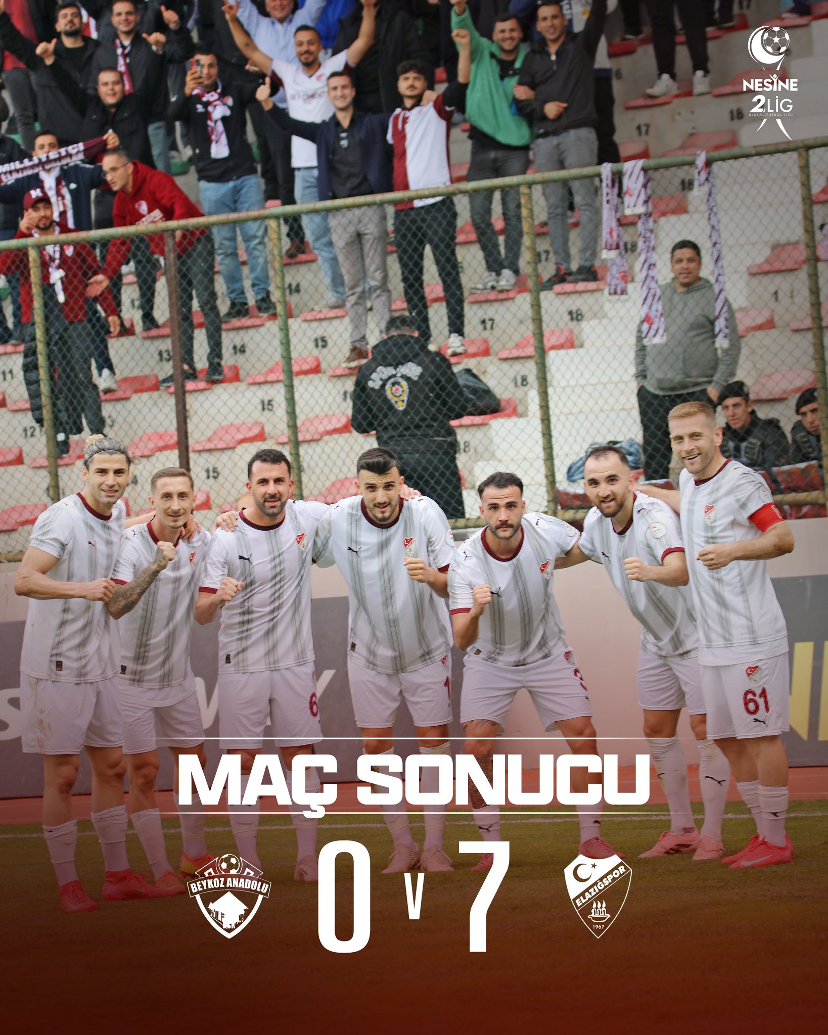 İkinci yarıda bordo-beyazlı ekip rakip kaleyi adeta abluka altına aldı. 46. dakikada Mikail’in golüyle fark üçe çıkarken, 53. dakikada Enes skoru 4-0’a taşıdı. Maçın son bölümünde etkili ataklarını sürdüren Elazığspor, 87. dakikada Samet Ali, 88. dakikada Efe Tatlı ve 90+1. dakikada Fuat’ın golleriyle sahadan 7-0’lık farklı galibiyetle ayrıldı.