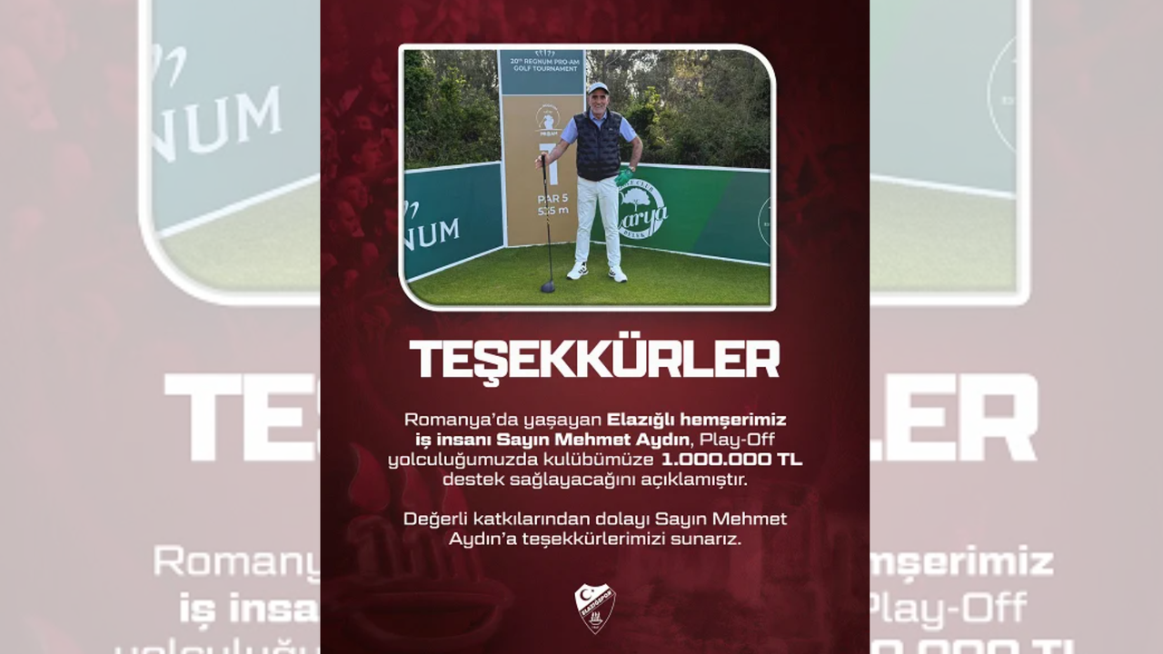Kulüp tarafından yapılan bilgilendirmede, söz konusu desteğin Play-Off sürecinde takıma moral ve motivasyon katkısı sunacağı belirtildi. Açıklamada, Mehmet Aydın’ın katkısının camia açısından önemli bir destek olduğu vurgulanarak teşekkür mesajına yer verildi.