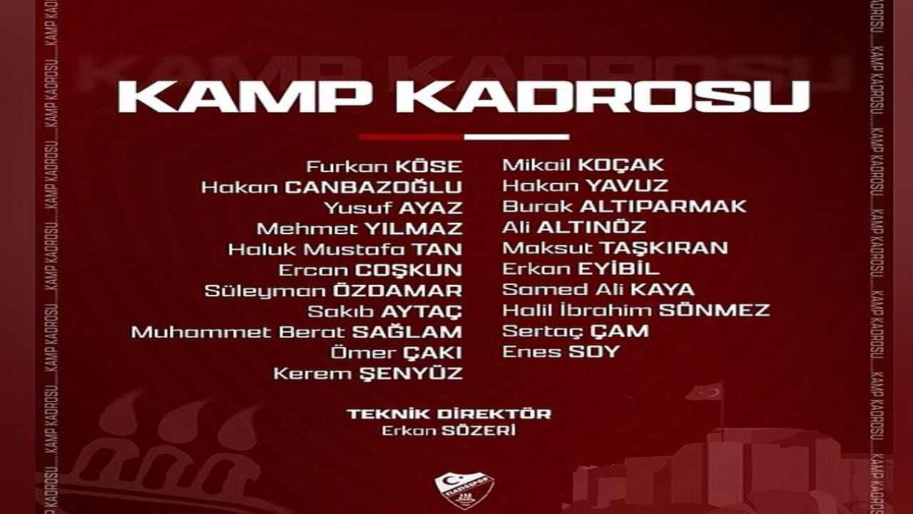 Teknik Direktör Erkan Sözeri’nin belirlediği kamp kadrosunda Furkan Köse, Hakan Canbazoğlu, Yusuf Ayaz, Mehmet Yılmaz, Haluk Mustafa Tan, Ercan Coşkun, Süleyman Özdamar, Sakıb Aytaç, Muhammet Berat Sağlam, Ömer Çakı, Kerem Şenyüz, Mikail Koçak, Hakan Yavuz, Burak Altıparmak, Ali Altınöz, Maksut Taşkıran, Erkan Eyibil, Samed Ali Kaya, Halil İbrahim Sönmez, Sertaç Çam ve Enes Soy yer aldı.