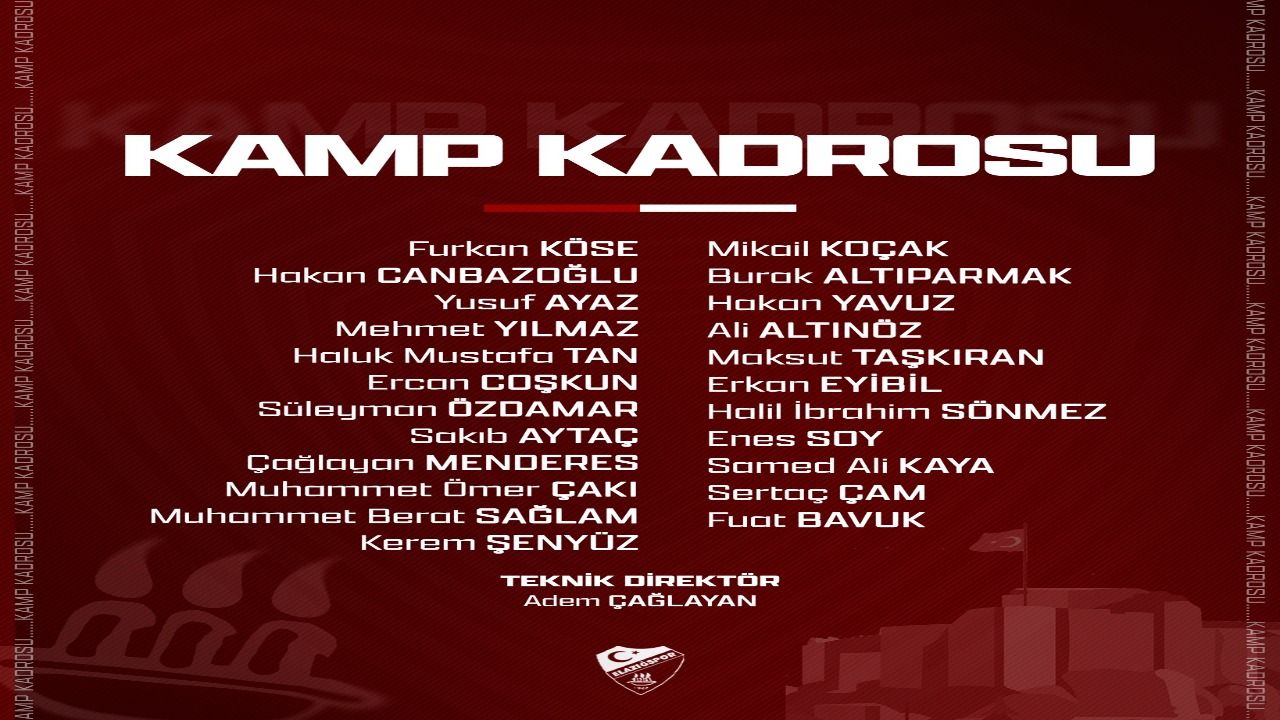 TFF 2. Lig’de şampiyonluk mücadelesi veren Elazığspor, Batman Petrolspor ile oynayacağı karşılaşma öncesinde kamp kadrosunu açıkladı. Teknik Direktör Adem Çağlayan yönetimindeki Bordo-Beyazlı ekipte toplam 23 futbolcu kampa dahil edildi.