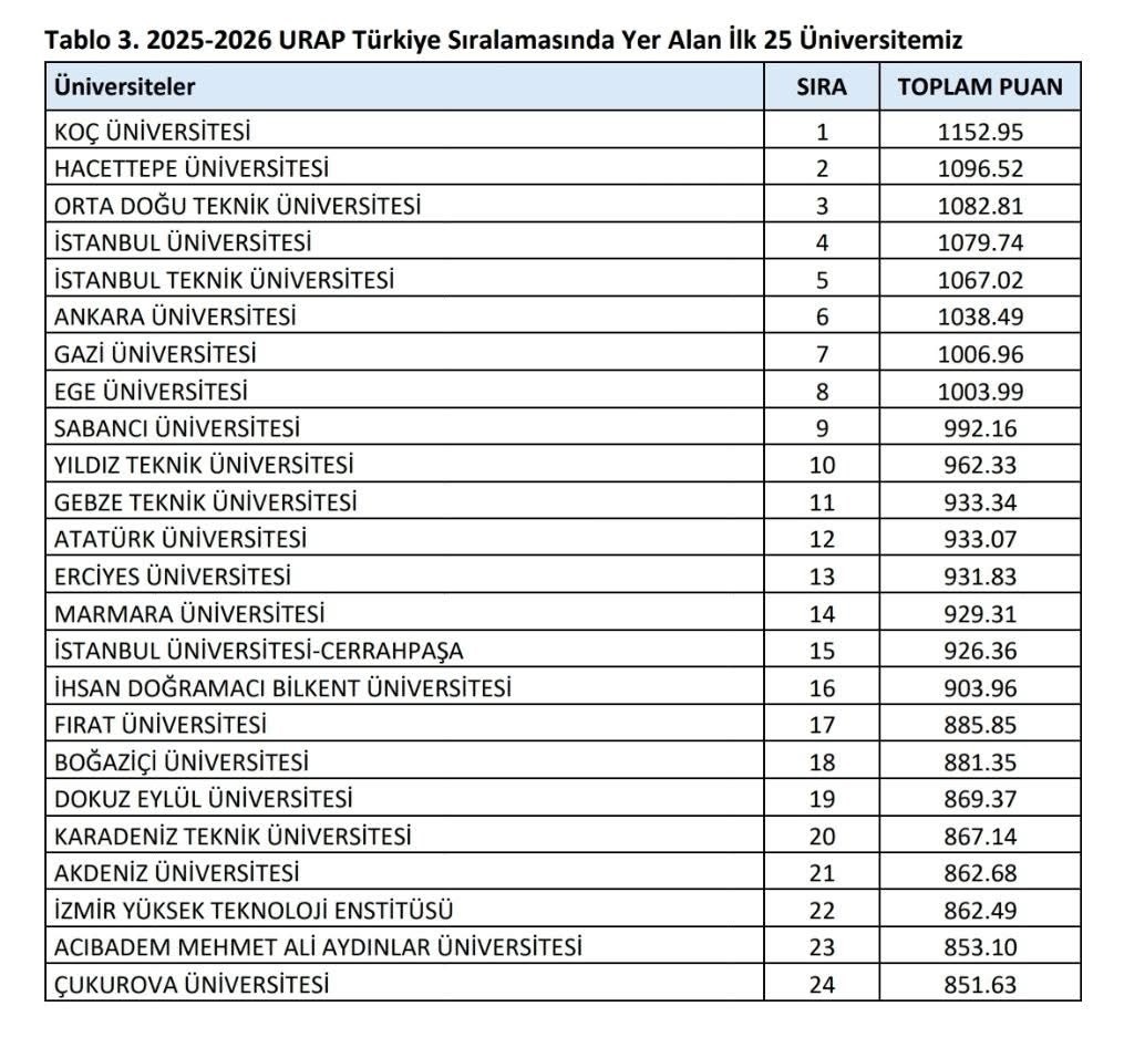 Üniversitelerin akademik performanslarını değerlendiren URAP (University Ranking by Academic Performance) tarafından açıklanan 2025–2026 Türkiye sıralamasında Fırat Üniversitesi önemli bir başarıya imza attı.
