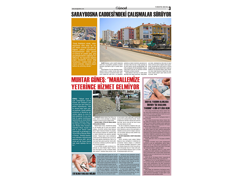 Elazığ Bülten Gazetesi olarak ilin sorunlarını yetkililere iletilmesi ve çözümü konusunda haberleri yapmayı takip etmeye devam edeceğiz.