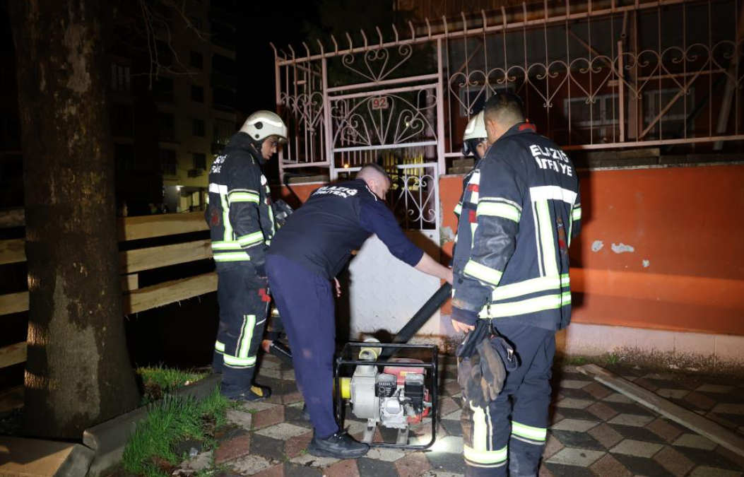 Elazığ'da inşaat için açılan alanın temeline dolan yağmur suyu, bitişikteki bina sakinlerinin ihbarıyla su itfaiye ekiplerince tahliye edildi.